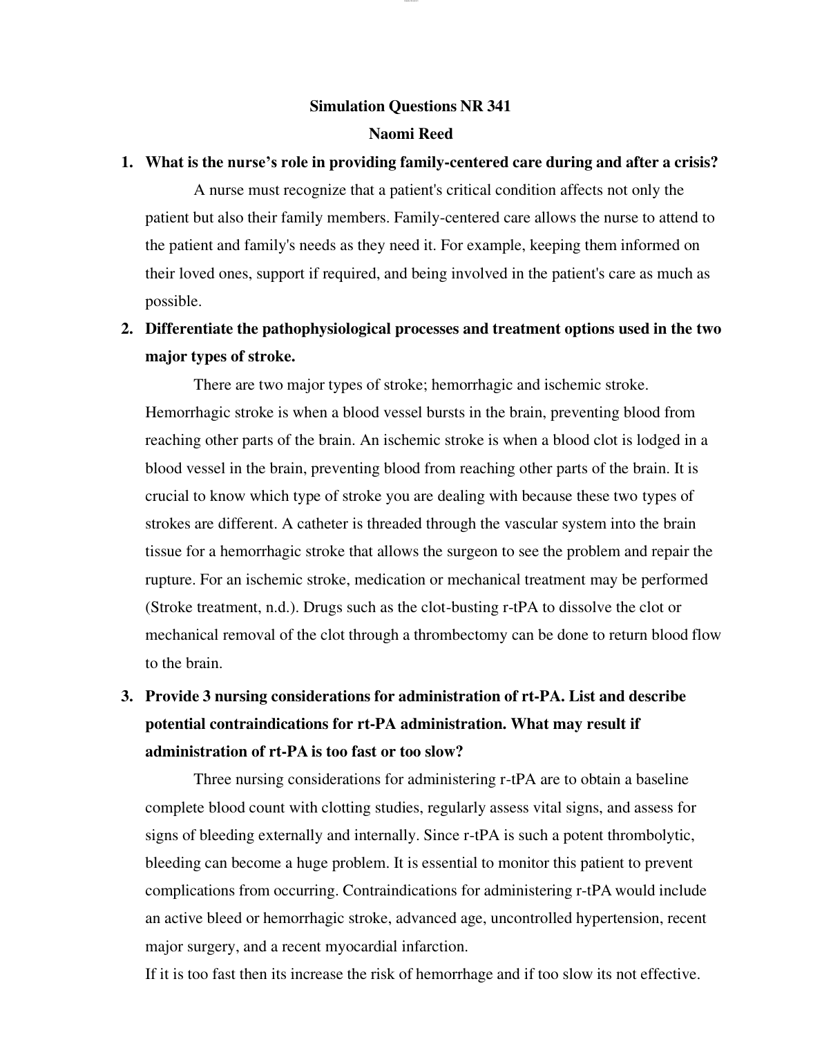 Adult Health Simulation Questions NR 341 Naomi Reed. LATEST UPDATED VERSION 2023