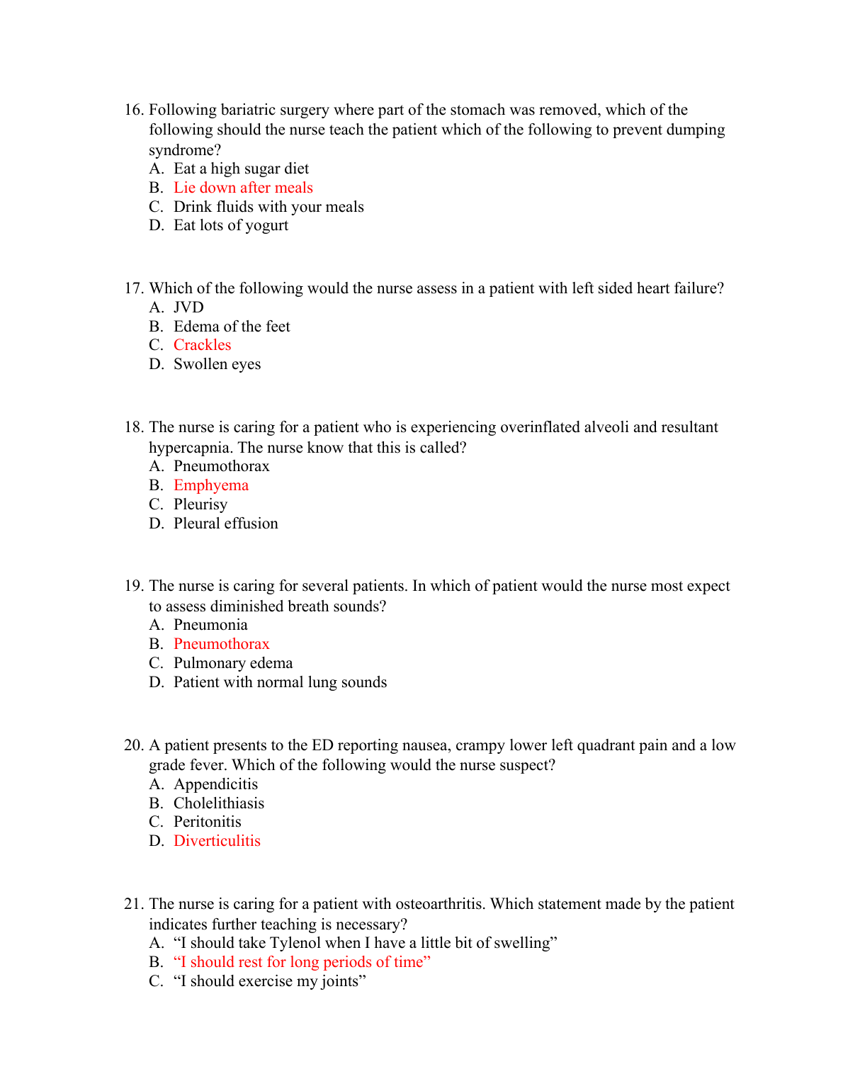 NURSING 240 Adult Health HESI Practice Test. Questions With 100% Verified Answers