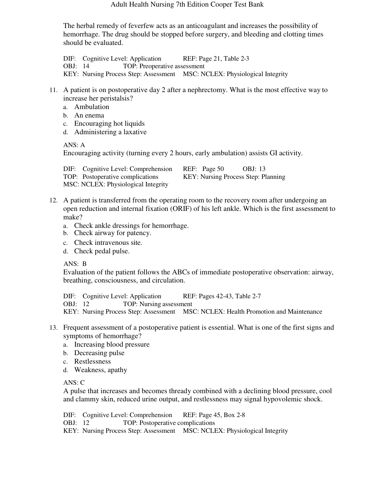 Test Bank For Adult Health Nursing 7th Edition Cooper (Chapter 2: Care of the Surgical Patient). DOWNLOAD INSTANTLY on www.hackedexams.com INSTANTLY