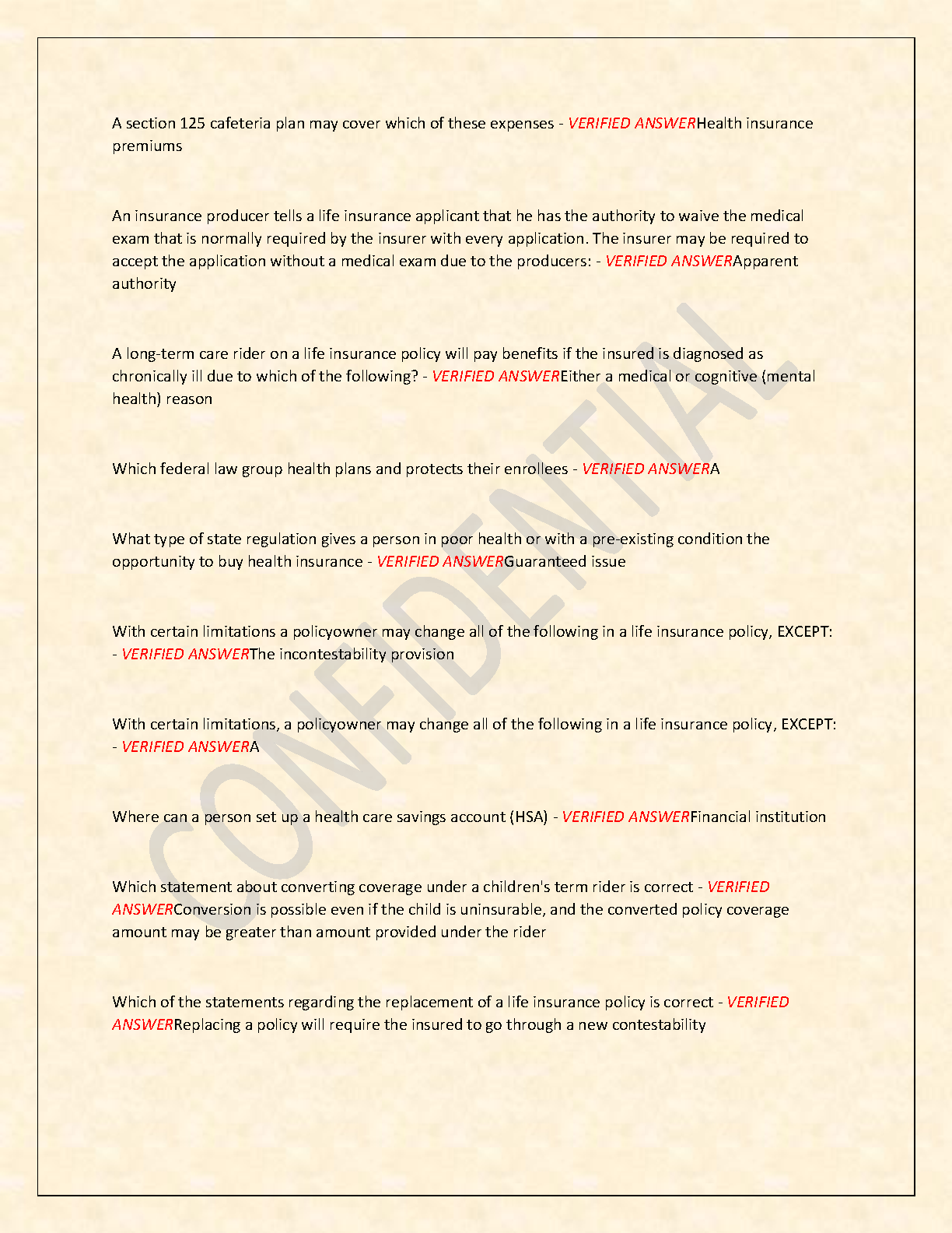 Ace your Texas insurance licensing exam on the first try! This comprehensive test bank is designed specifically for the Texas General Lines Life, Accident, and Health (LAH05) exam. It features a 'Fully Solved Edition' with an extensive collection of practice questions, each paired with a 100% correct, verified answer. Our guide covers all critical topics you'll face on the real exam, including COBRA, HIPAA regulations, whole life policies, annuities, and the principles of insurance contracts. By studying with these expertly verified Q&As, you'll master the material, build confidence, and be fully prepared to pass your exam with ease, securing your insurance license without the stress of retakes.