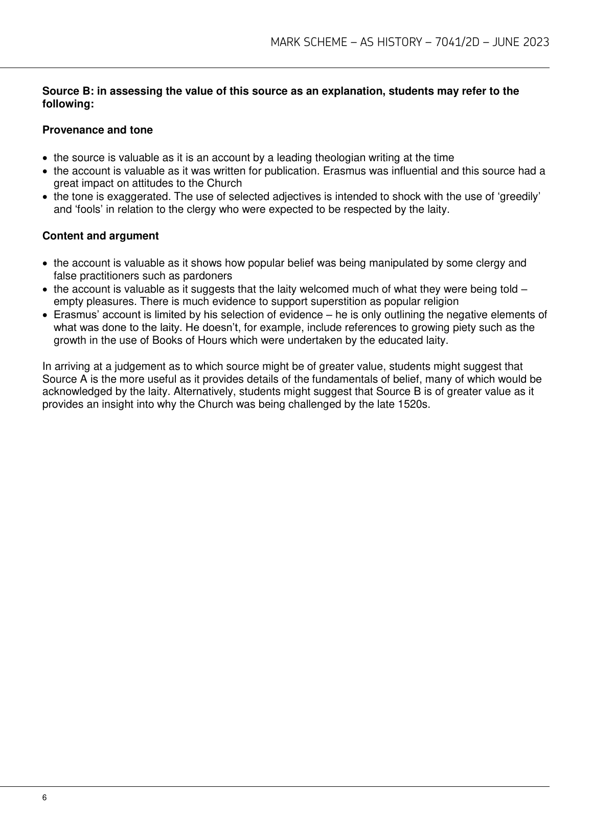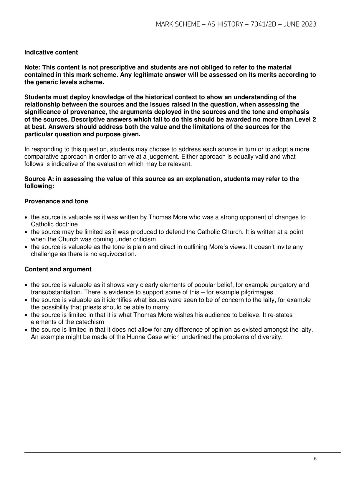AQA AS HISTORY PAPER 2 2023 MARK SCHEME (7041/2D: Religious conflict and the Church in England, c1529–c1570 - The break with Rome, c1529–1547)