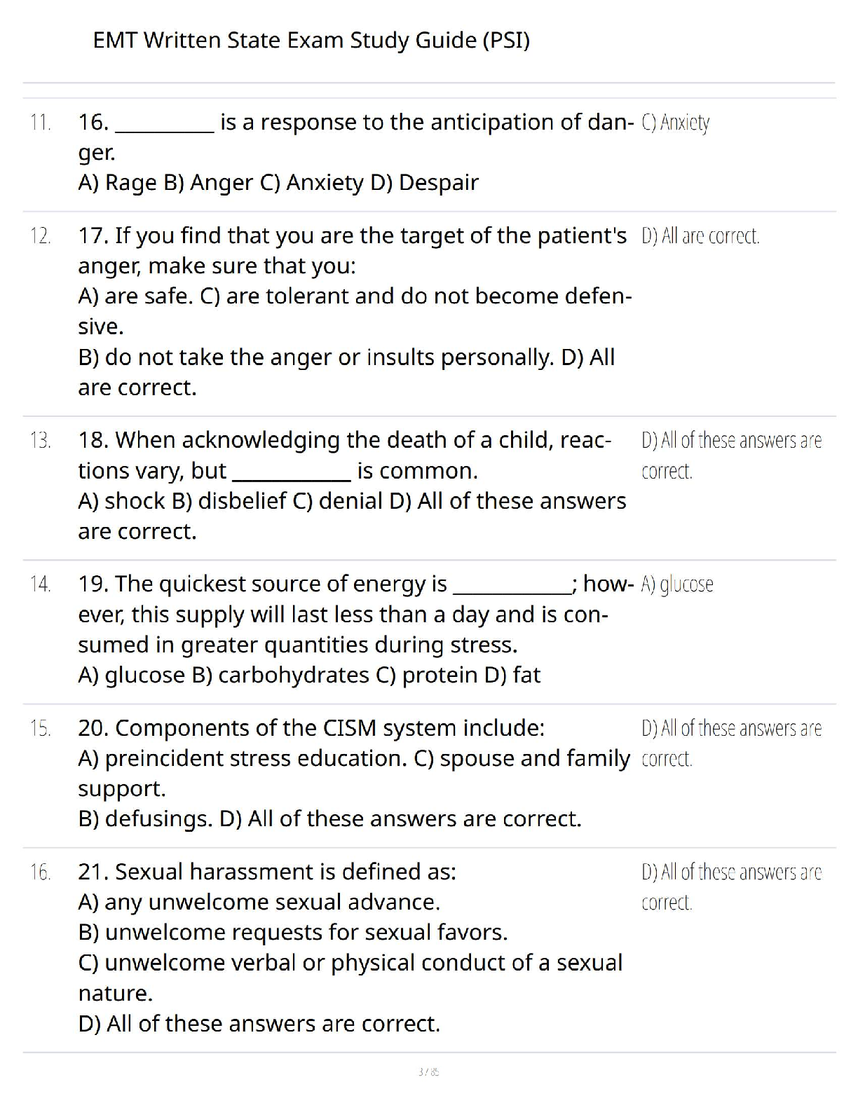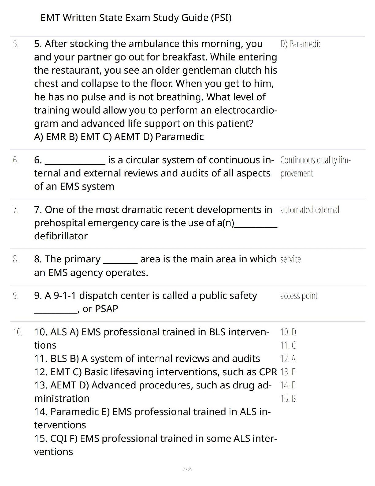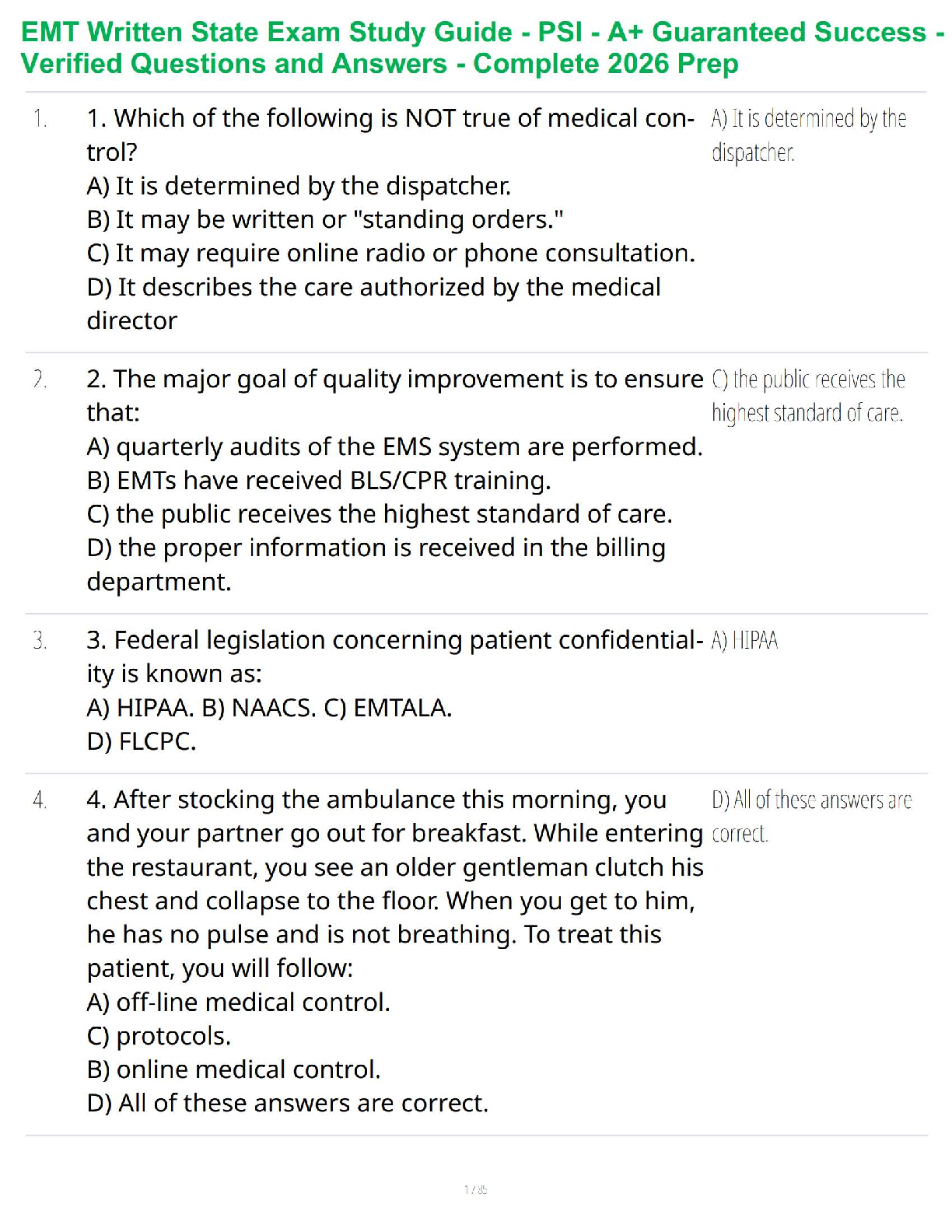2025/2026 PSI EMT Written State Exam Study Guide: Verified Questions and Answers by Daniel Limmer and Michael O'Keefe (14th Edition) - Pass on Your First Attempt and Avoid Resits