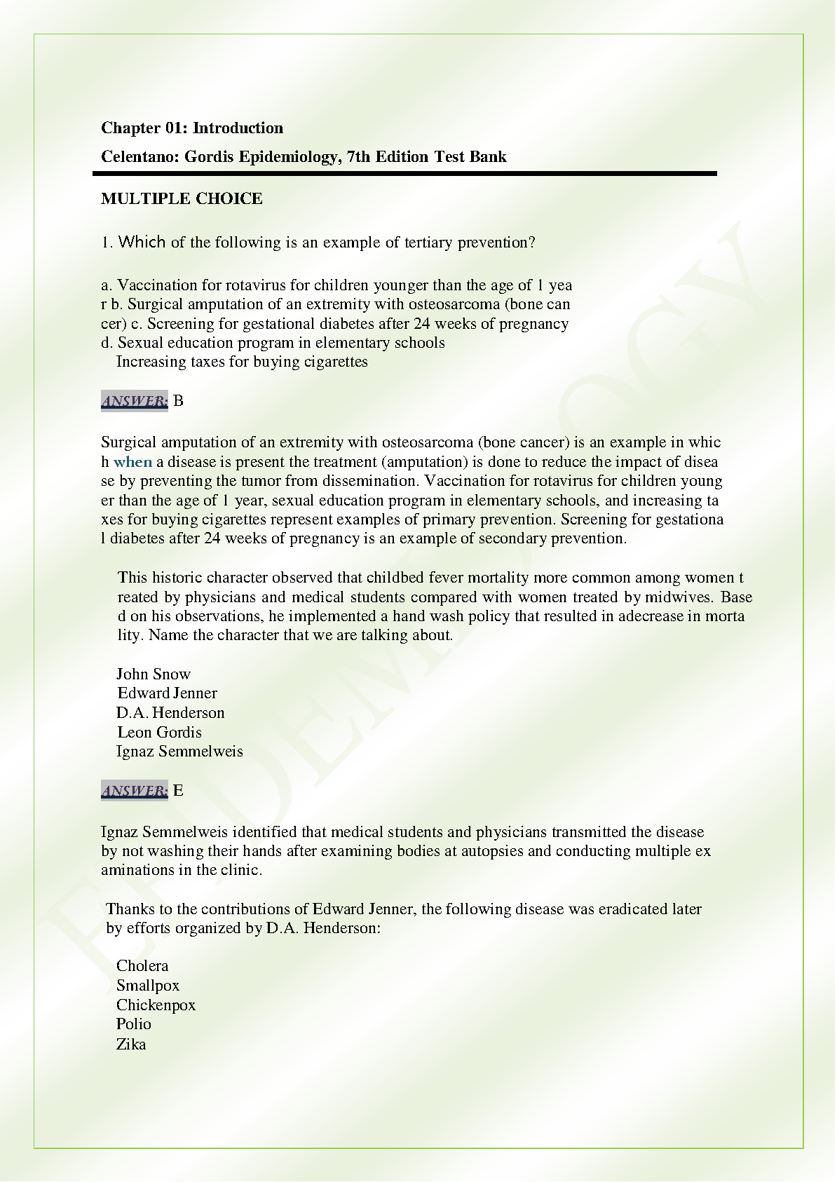 Comprehensive Test Bank for Gordis Epidemiology 7th Edition by David D. Celentano, Moyses Szklo, and Youssef Farag - Chapters 1-20 Complete