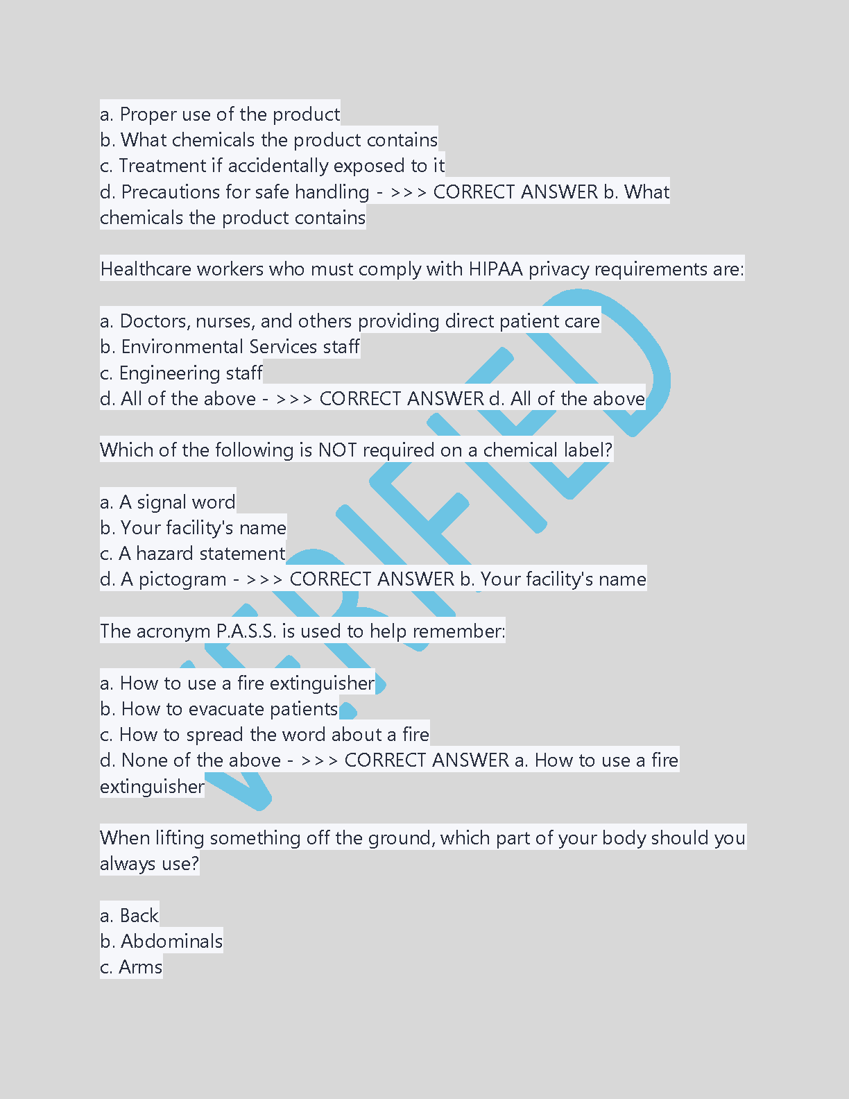 Unlock success with this authoritative study resource for the Prophecy Core Mandatory Part I 2025 Update. Developed to align with the latest 2025/2026 academic year standards, this guide features detailed exam-style questions and verified solutions on essential nursing topics including medical gas hazards, proper PPE usage, hospital safety protocols during disasters, and chemical safety information. This resource is meticulously crafted to help healthcare professionals and students master core competencies quickly, ensuring a passing score on the first try and eliminating the need for stressful resits.