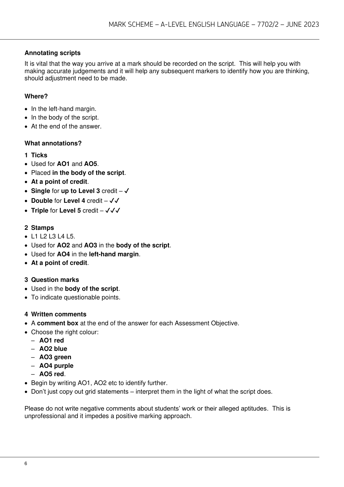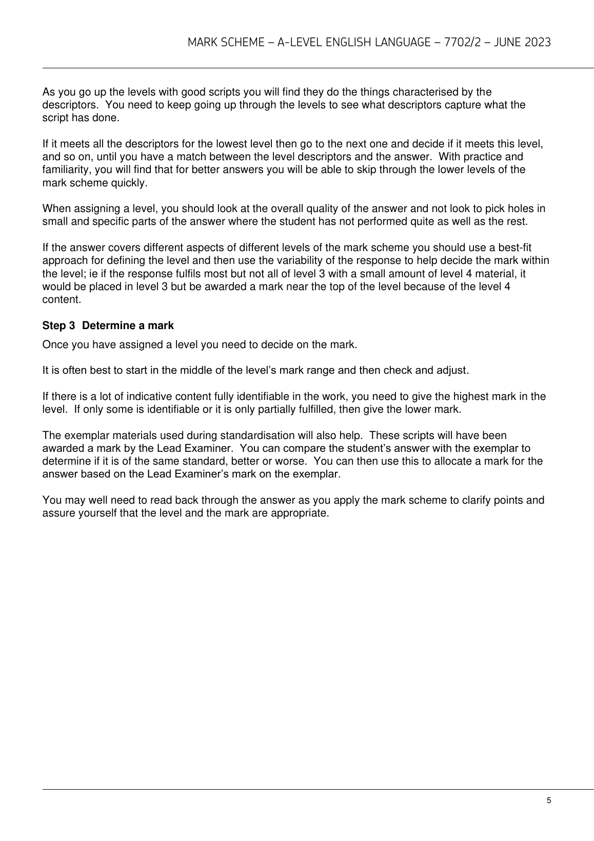 AQA A LEVEL ENGLISH LANGUAGE PAPER 2 2023 MARK SCHEME (7702/2: Language diversity and change)