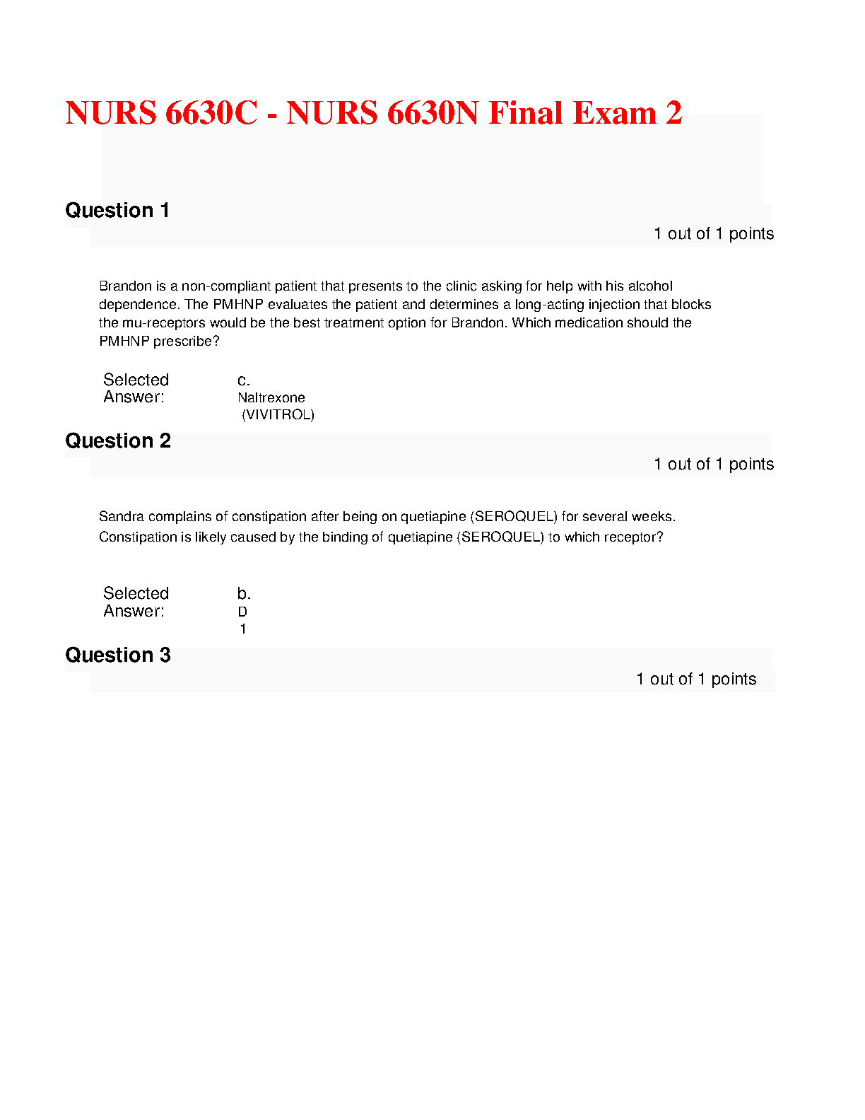 NURS 6630C. NURS 6630N Final Exam 2. QUESTIONS AND ANSWERS 2023