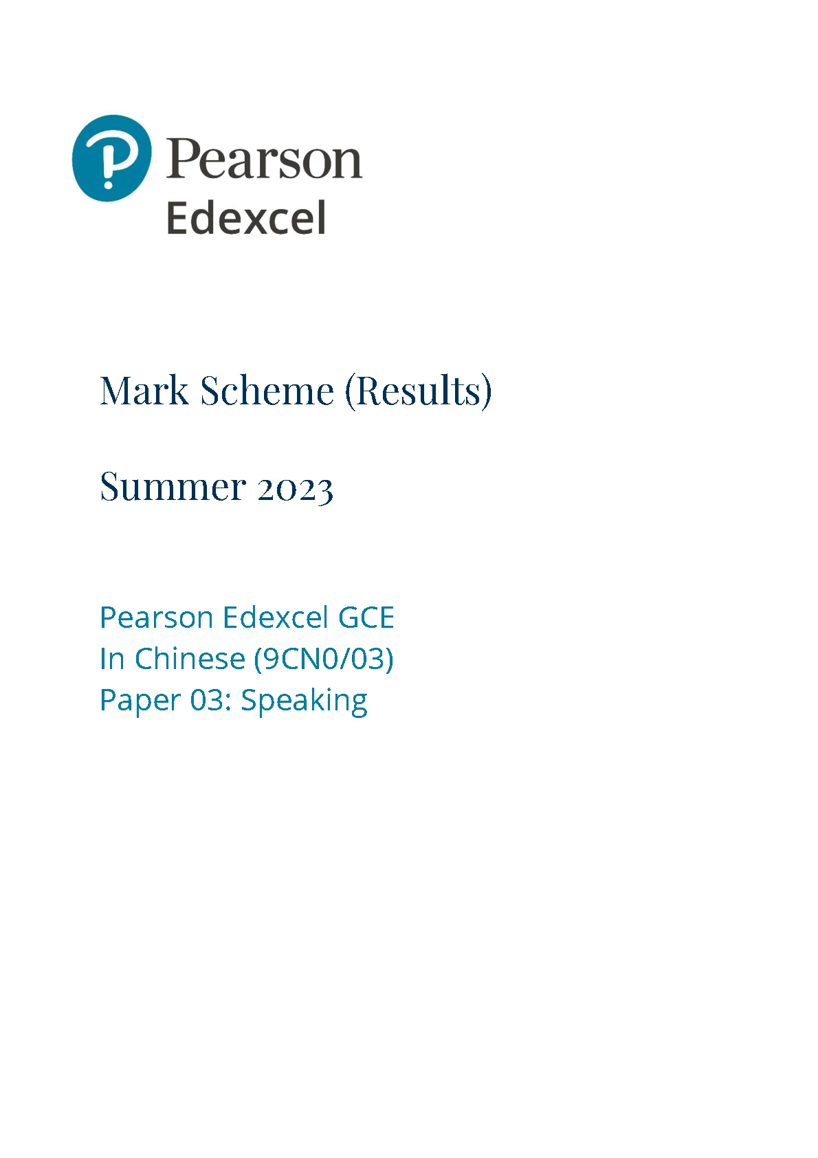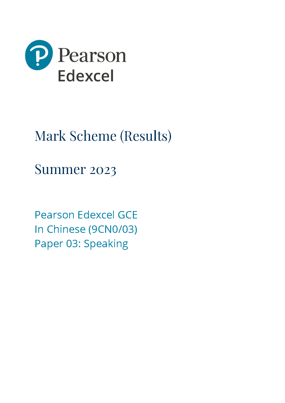 PEARSON EDEXCEL A LEVEL Chinese PAPER 3 2023 MARK SCHEME (9CN0/03: Speaking). DOWNLOAD OFFICIAL AND VERIFIED EDEXCEL PEARSON A LEVEL Chinese PAPER 3 2023 on www.hackedexams.com INSTANTLY.