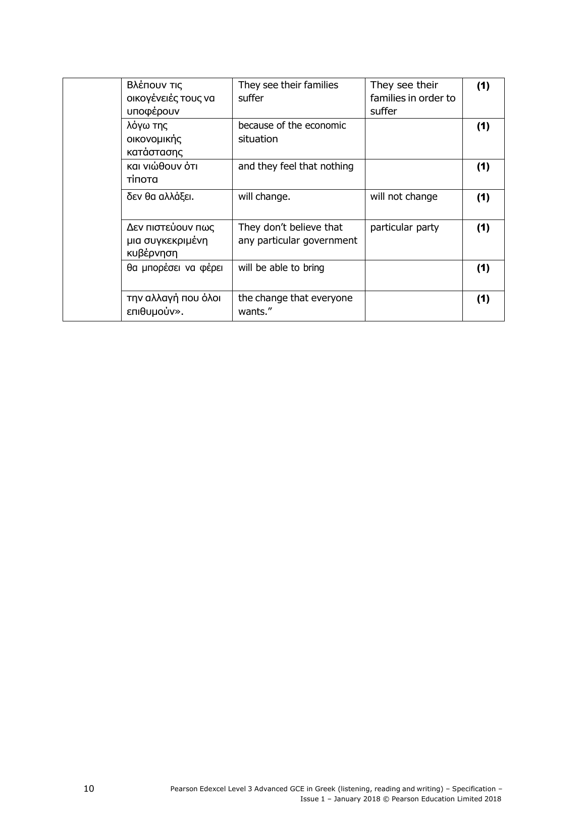 PEARSON EDEXCEL A LEVEL Greek PAPER 1 2023 MARK SCHEME (9GK0/01: Translation into English, Reading Comprehension and Writing (research task))