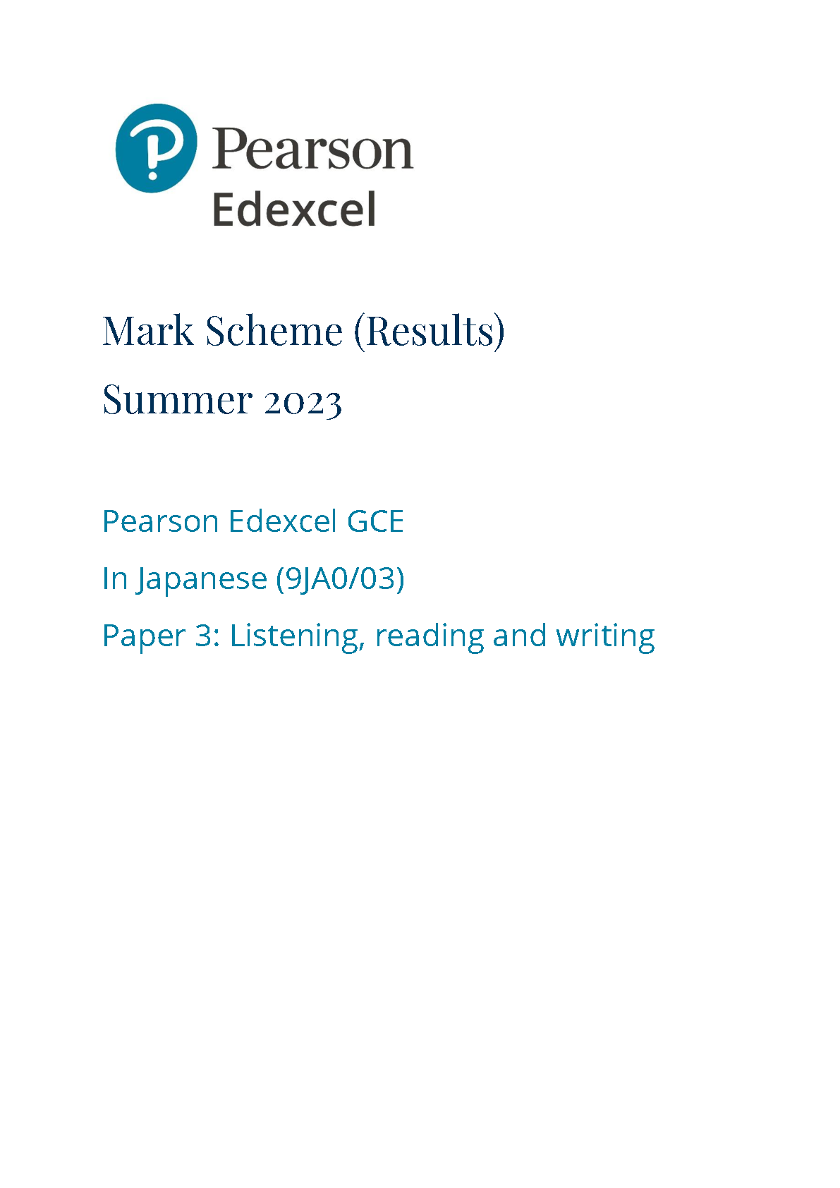 PEARSON EDEXCEL A LEVEL Japanese PAPER 3 2023 MARK SCHEME (9JA0/03: Listening, reading and writing)