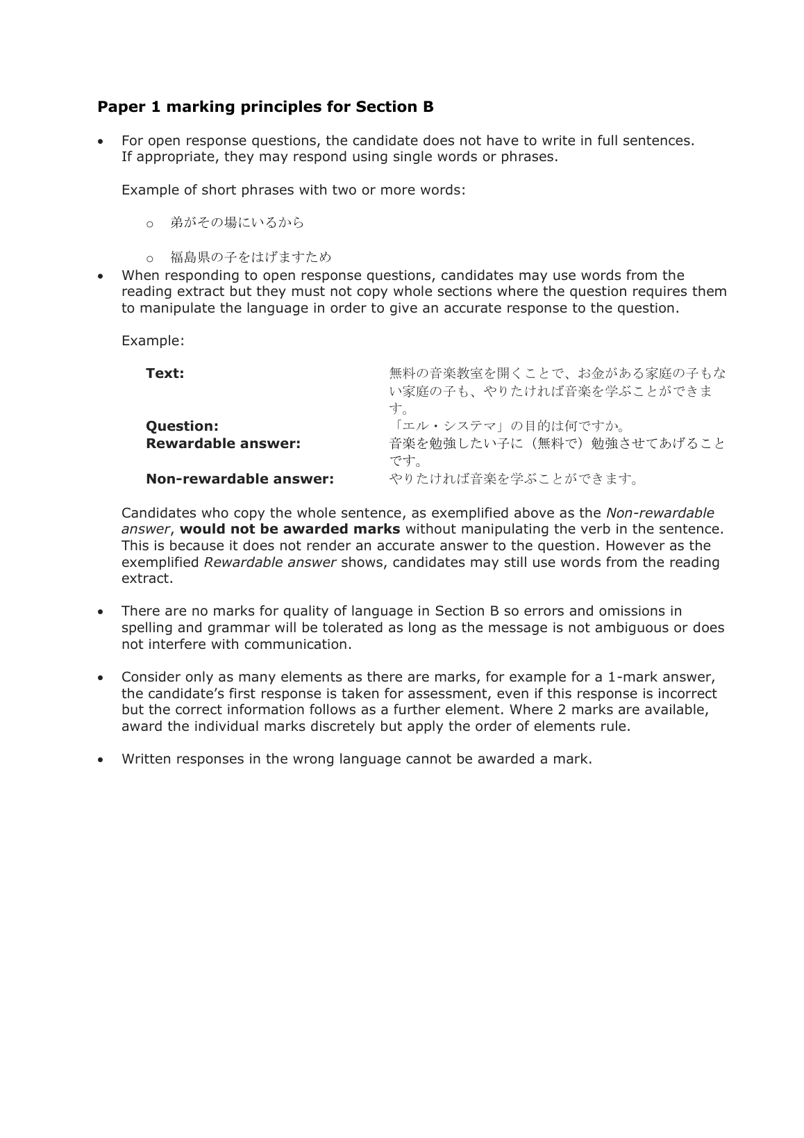 PEARSON EDEXCEL A LEVEL Japanese PAPER 1 2023 MARK SCHEME (9JA0/01: Translation into English, Reading comprehension and Writing (research task)).