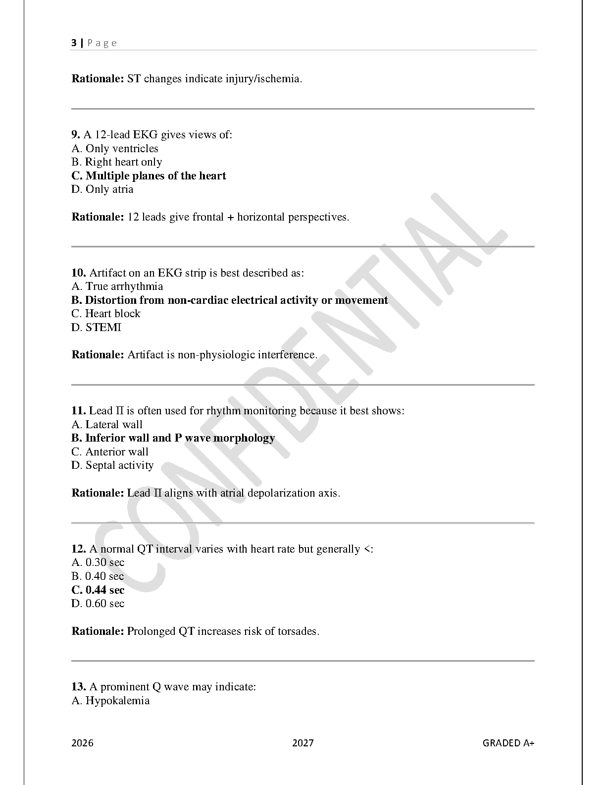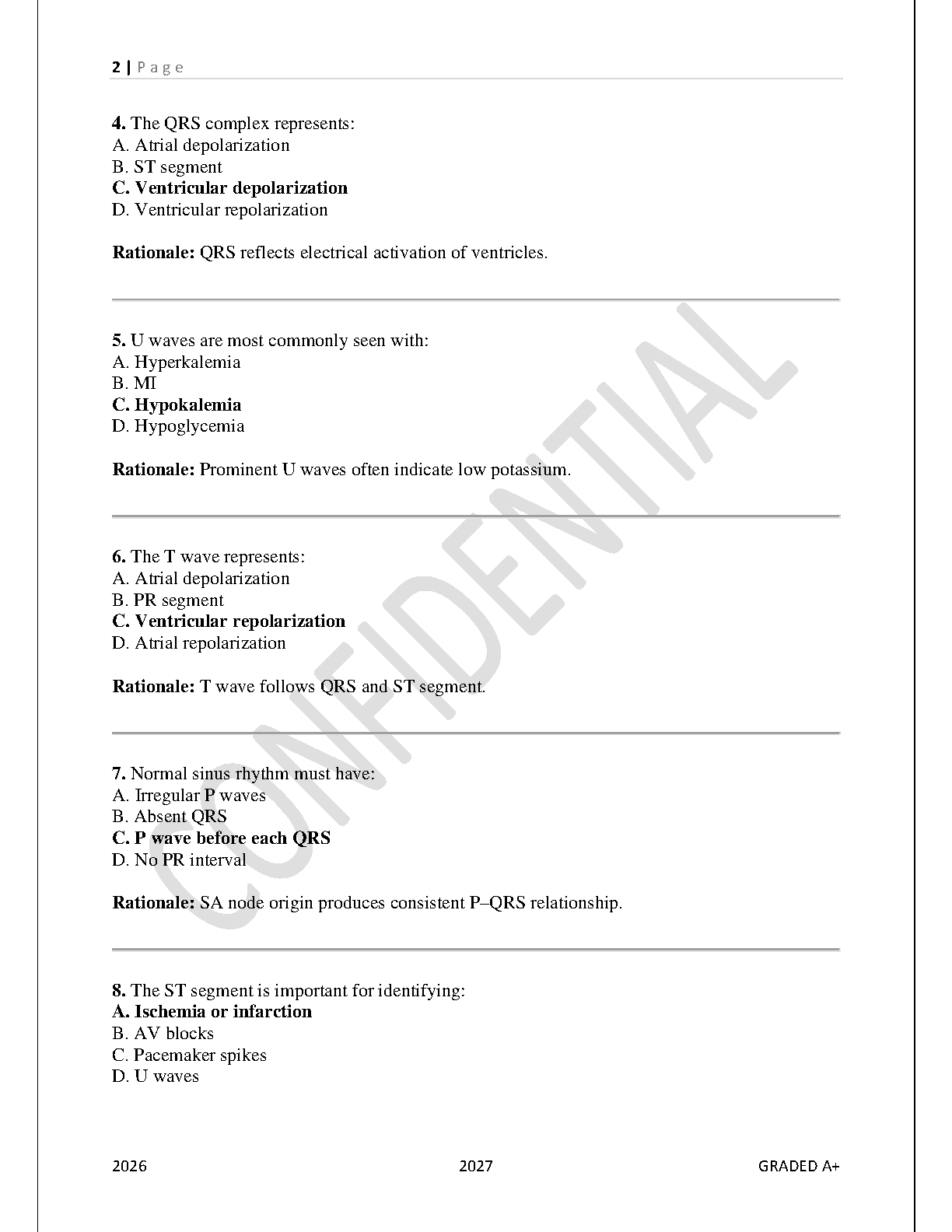 Master the essentials of electrocardiography with the updated 2025/2026 edition of the SHARP EKG-ECG Practice Exam. This comprehensive study resource features the most recent actual exam questions, including EKG fundamentals, strip calibration, and interval measurements. Each question is accompanied by a verified correct answer and a detailed rationale to ensure deep understanding. Designed for healthcare professionals and nursing students, this guide is the ultimate tool to help you secure an A+ and pass your competency assessment on the first try, effectively avoiding the need for resits.