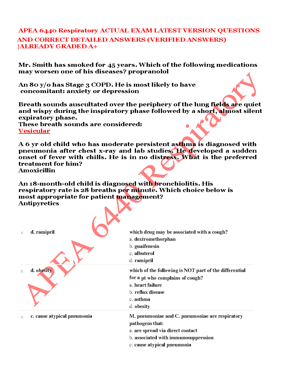 APEA 6440 Respiratory Nursing Exam Study Guide: 4th Edition by Amelie Hollier and Mimi Secor | Released lately for 2025/2026 academic year | Pass on your first attempt and avoid resits