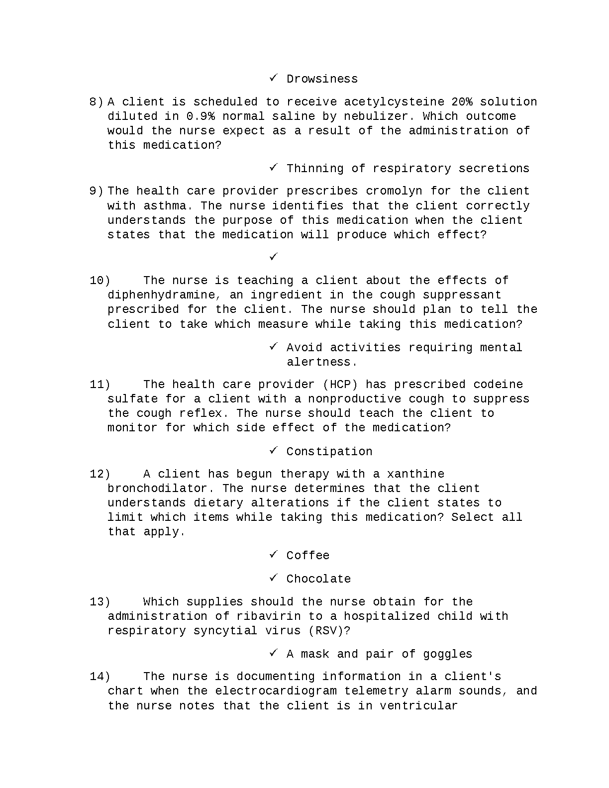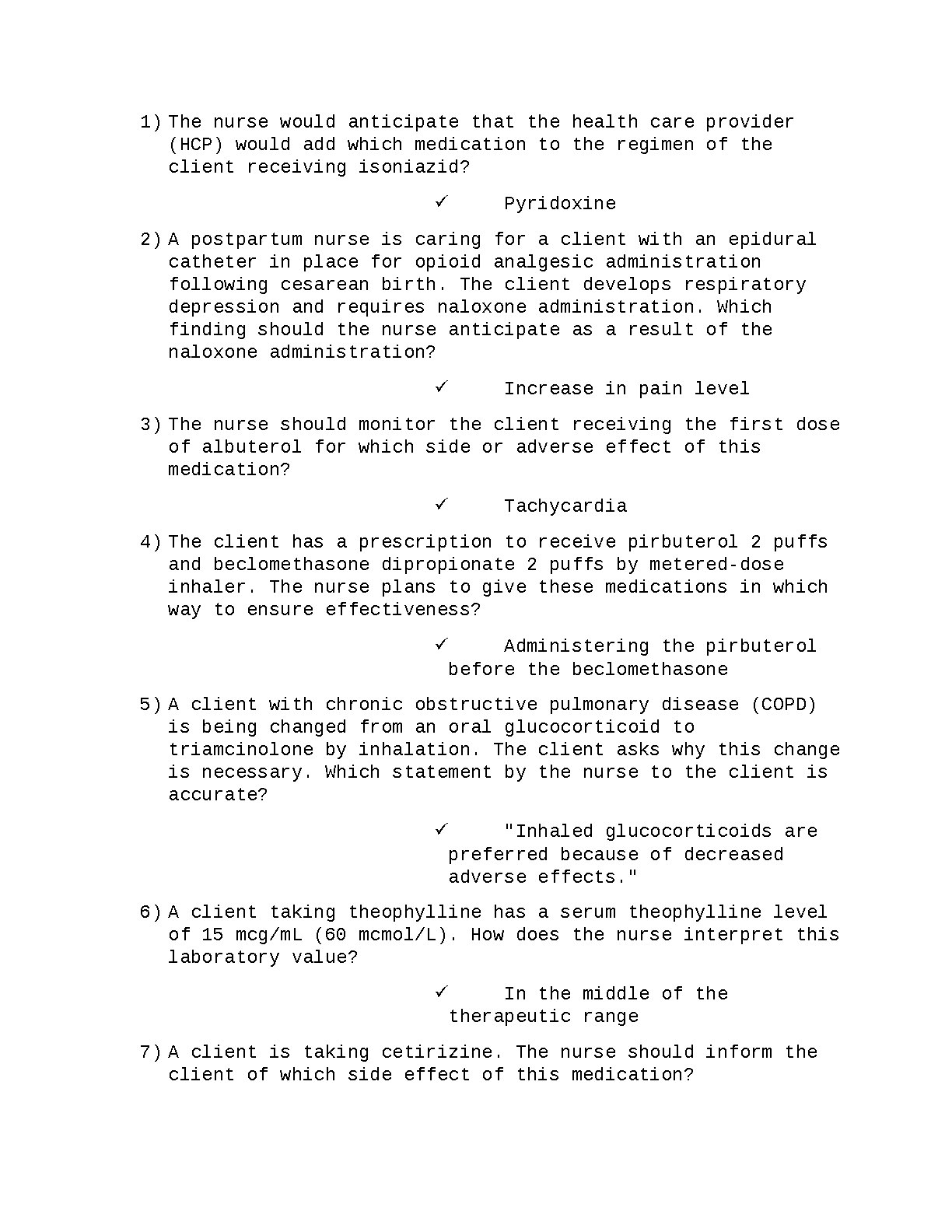 Master your nursing pharmacology exams with this premium study resource updated for the 2025/2026 academic year. This document provides high-yield practice questions and detailed rationales covering key medications like Albuterol, Theophylline, and Isoniazid, based on the Saunders Comprehensive Review for the NCLEX-RN, 9th Edition by Linda Anne Silvestri and Angela Silvestri. This guide is specifically designed to help nursing students pass their pharmacology exams on the first attempt, ensuring success and avoiding academic resits. Key topics include respiratory medication administration, therapeutic drug levels, and opioid antagonist monitoring.