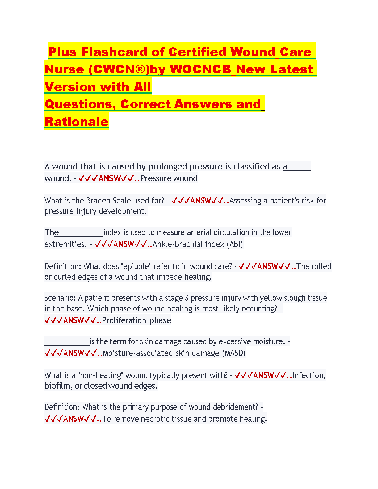 WOCNCB Certified Wound Care Nurse (CWCN) Exam Prep 2025/2026 | Based on Wound Management Core Curriculum 2nd Edition by Laurie McNichol, Catherine Ratliff, and Stephanie Yates | Detailed Questions & Rationales for First-Attempt Success