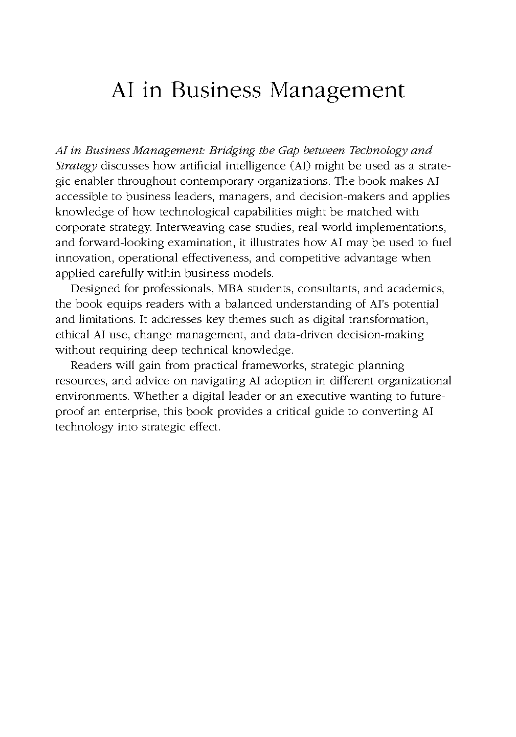 Unlock success in your business and technology courses with this essential study resource for the 2025/2026 academic year. Based on the 1st Edition of 'AI in Business Management: Bridging the Gap between Technology and Strategy' by renowned authors Jay Kumar Pandey, Mritunjay Rai, and Samrat Ray, this guide provides a deep dive into how artificial intelligence transforms modern management. Designed specifically to help students pass their exams on the first attempt and avoid stressful resits, this material simplifies complex technical concepts into strategic business insights. Whether you are studying corporate strategy, digital transformation, or management technology, this resource offers the clarity and focus needed to master the curriculum and excel in high-stakes assessments.