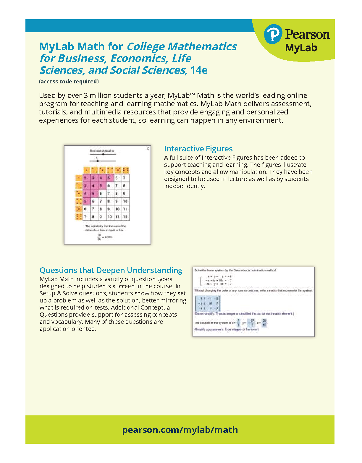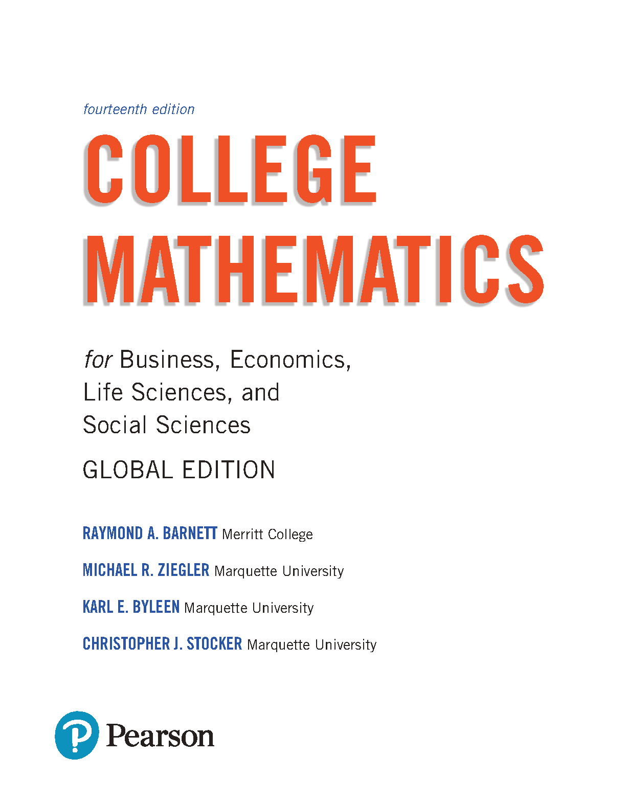 Secure a first-attempt pass and avoid the stress of resits with this definitive test bank for College Mathematics for Business, Economics, Life Sciences, and Social Sciences, 14th Edition. Featuring the expert insights of Raymond A. Barnett, Michael R. Ziegler, Karl E. Byleen, and Christopher J. Stocker, this resource has been updated for the 2025/2026 academic year. It provides students with critical practice questions and exam-style problems designed to master complex mathematical concepts in business and social science contexts, ensuring you are fully prepared for your upcoming assessments.