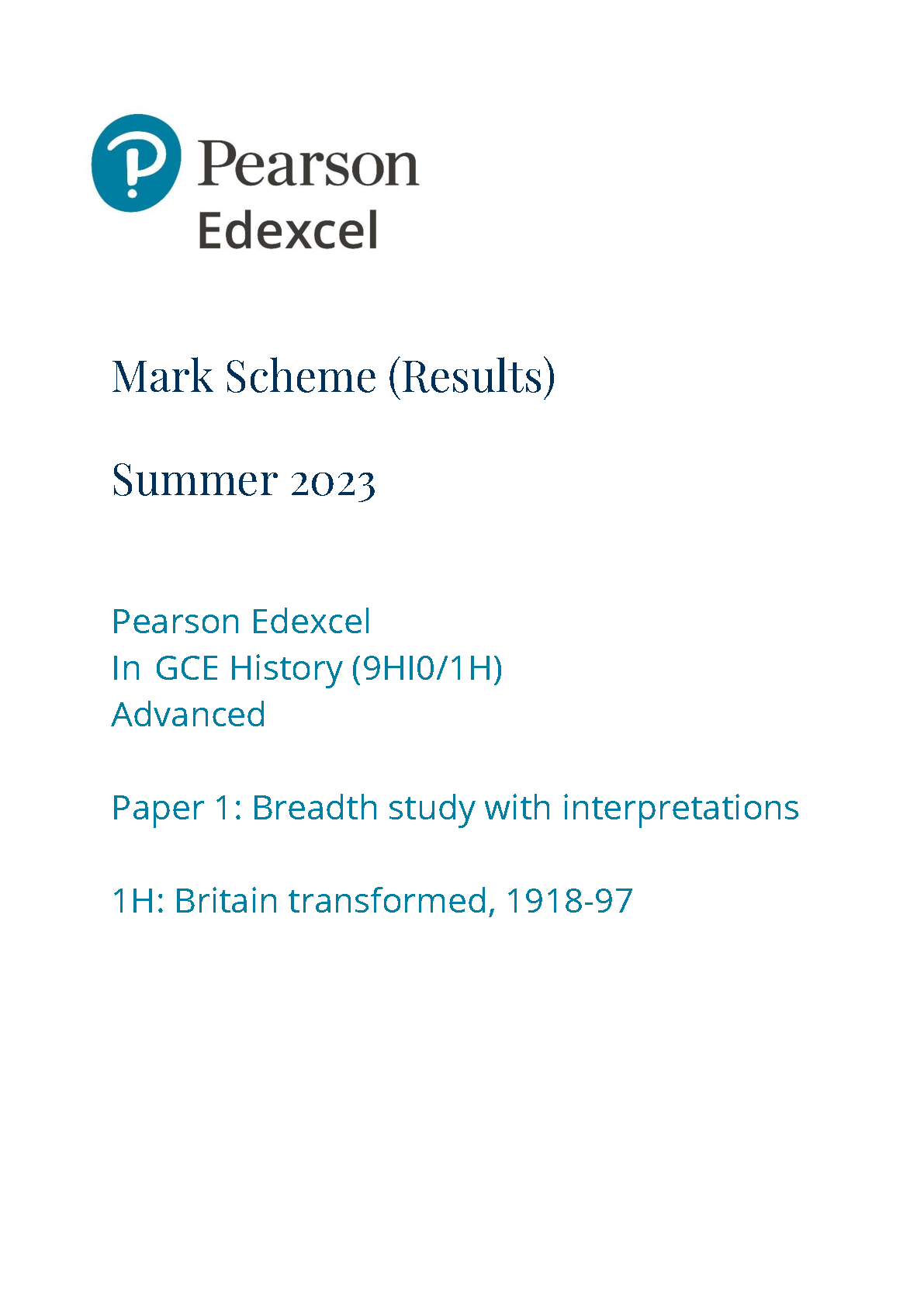 PEARSON EDEXCEL A LEVEL History PAPER 1 2023 MARK SCHEME (9HI0/1H: Breadth study with interpretations - Britain transformed, 1918-97)