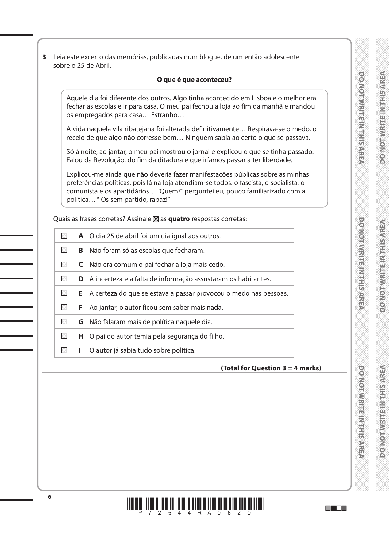 PEARSON EDEXCEL A LEVEL PORTUGUSE PAPER 1 2023 (9PG0/01: Translation Into English, Reading Comprehension And Writing (Research Task))