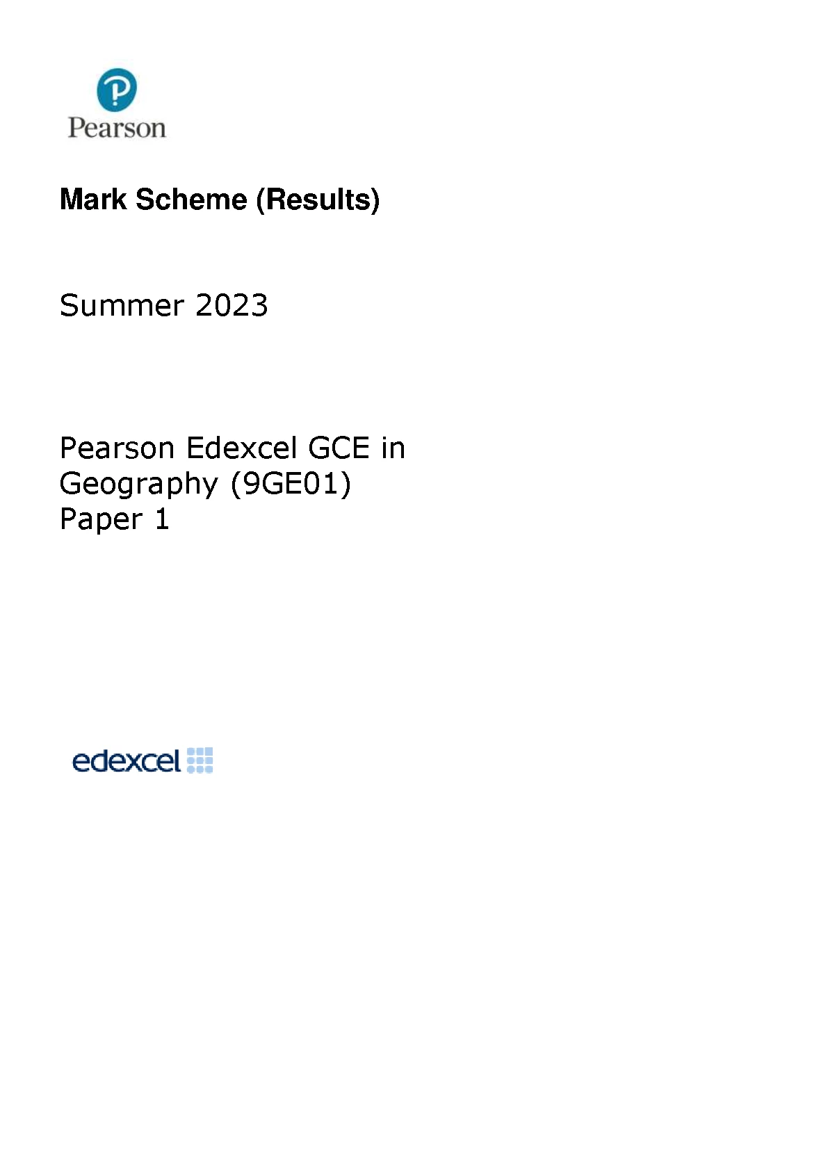 PEARSON EDEXCEL A LEVEL Geography PAPER 1 2023 MARK SCHEME (9GE0/01)
