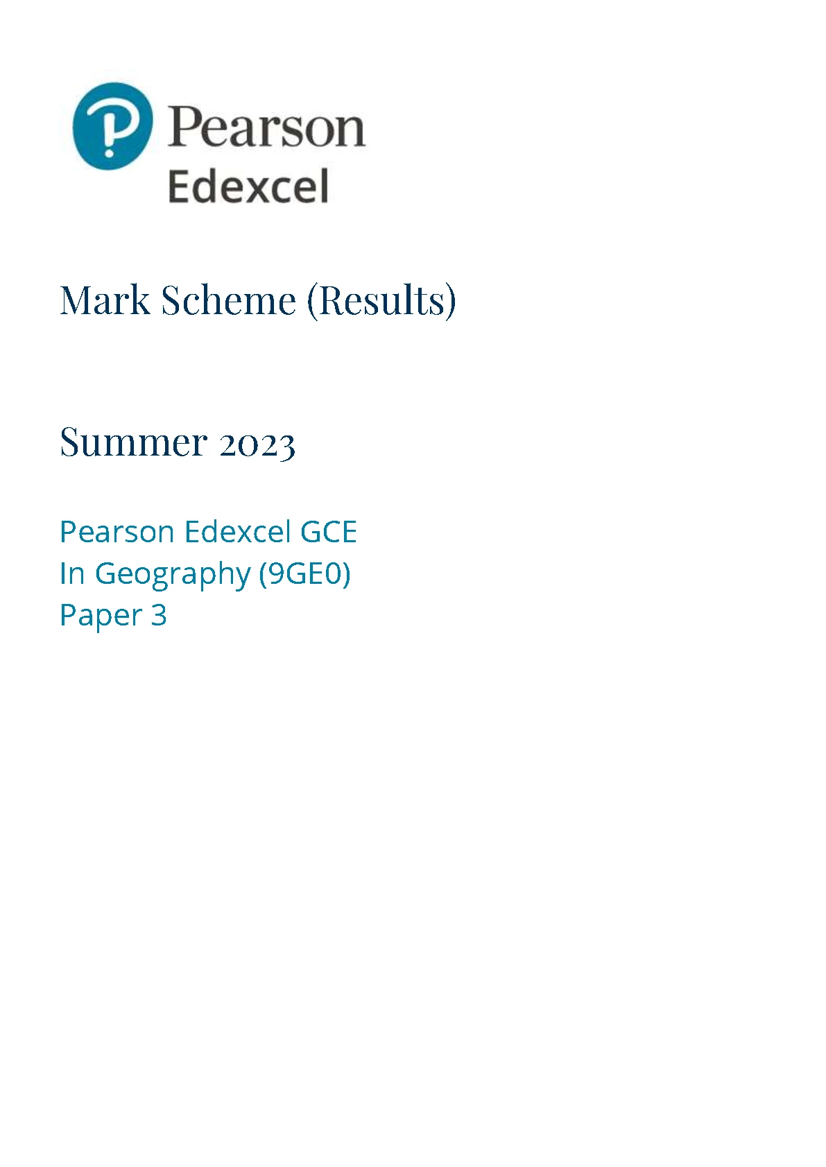 PEARSON EDEXCEL A LEVEL Geography PAPER 3 2023 MARK SCHEME (9GE0/03)