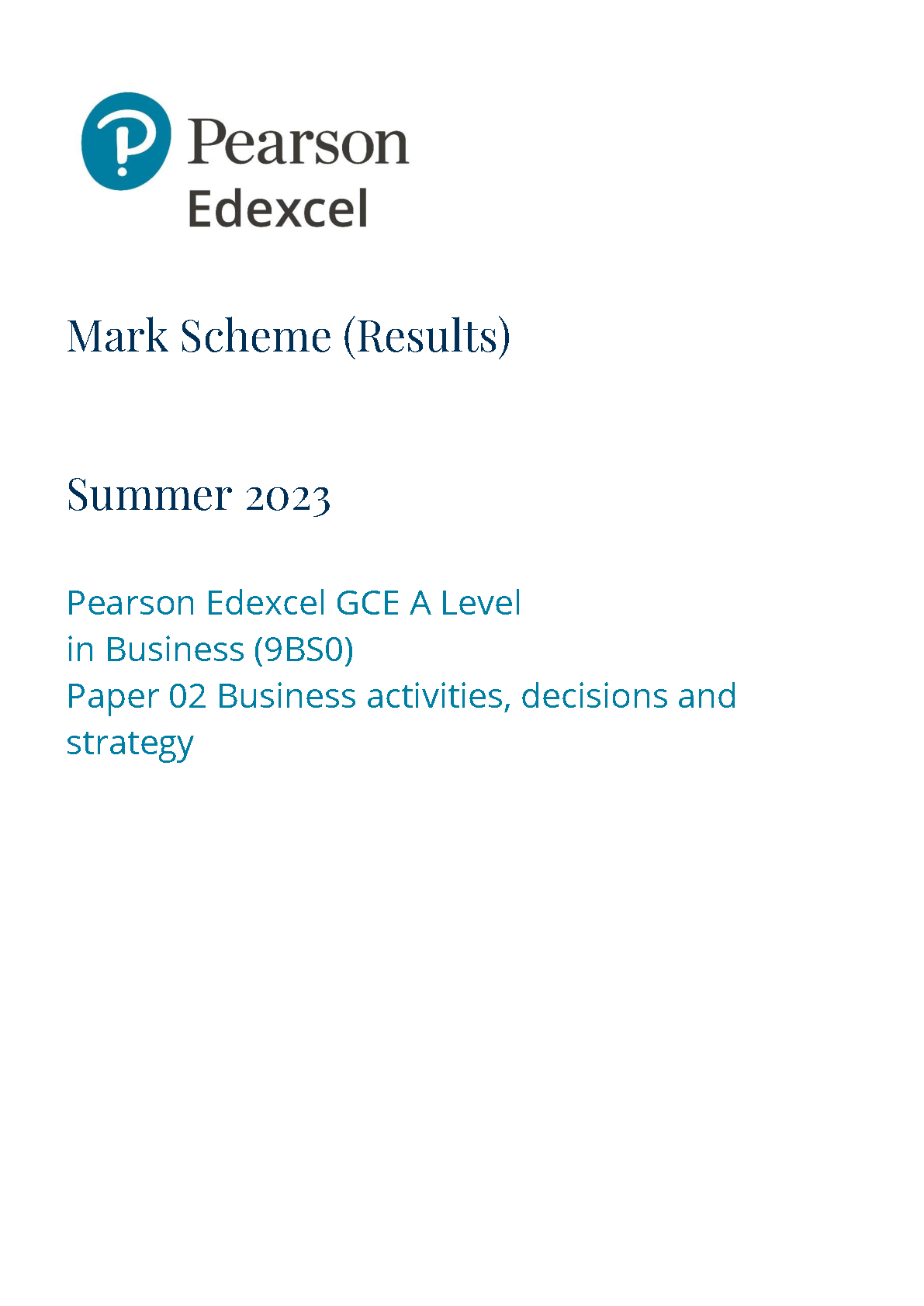 PEARSON EDEXCEL A LEVEL Business PAPER 2 2023 MARK SCHEME (9BS0/02: Business activities, decisions and strategy)