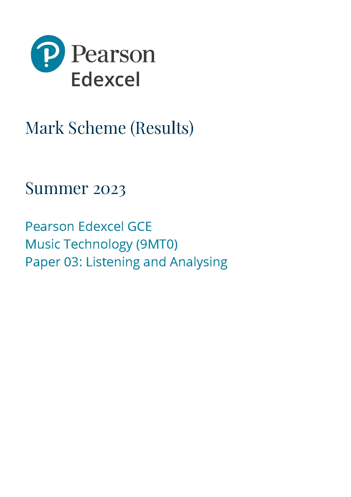 PEARSON EDEXCEL A LEVEL Music Technology PAPER 3 2023 MARK SCHEME (9MT0/03: Listening and Analysing)