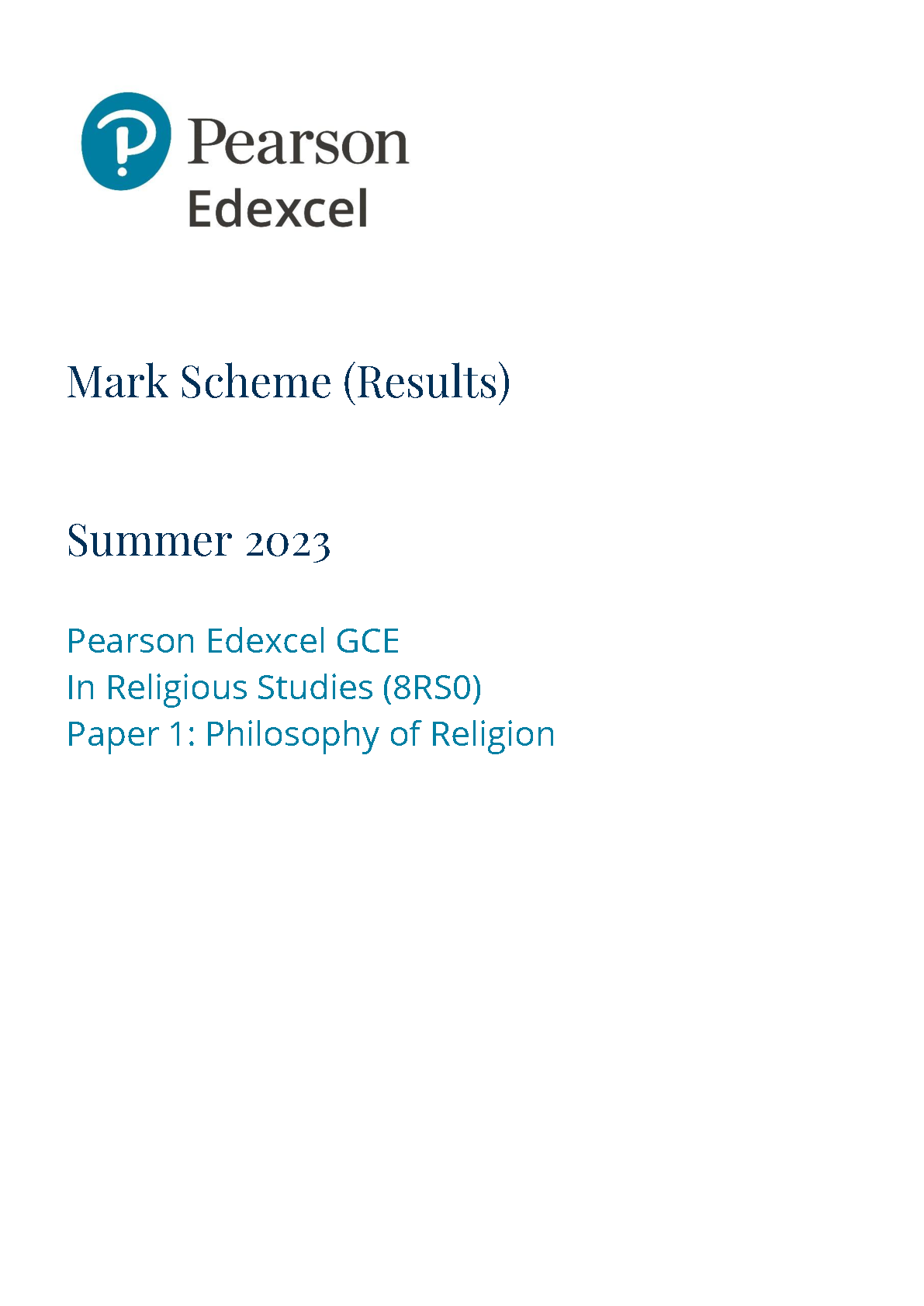 PEARSON EDEXCEL AS Religious Studies PAPER 1 2023 MARK SCHEME (8RS0/01: Philosophy of Religion)
