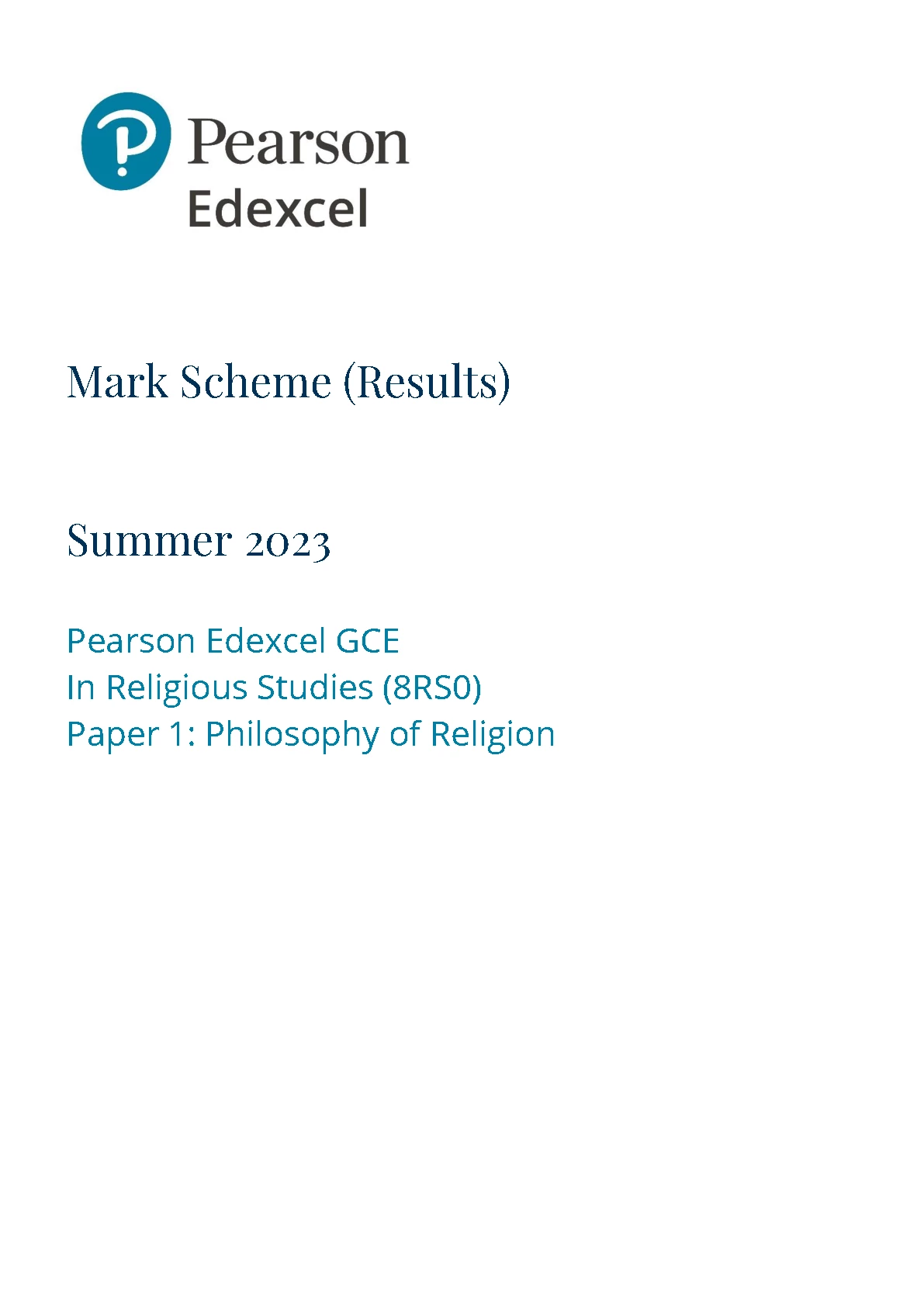PEARSON EDEXCEL AS Religious Studies PAPER 1 2023 MARK SCHEME (8RS0/01: Philosophy of Religion). DOWNLOAD OFFICIAL AND VERIFIED EDEXCEL PEARSON AS Religious Studies PAPER 1 2023 on www.hackedexams.com INSTANTLY.