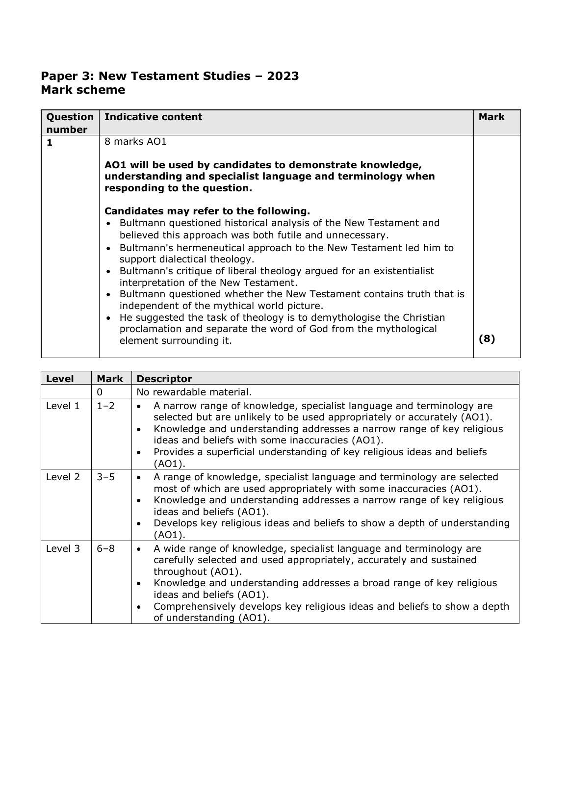 PEARSON EDEXCEL A LEVEL Religious Studies PAPER 3 2023 MARK SCHEME (9RS0/03: New Testament Studies)