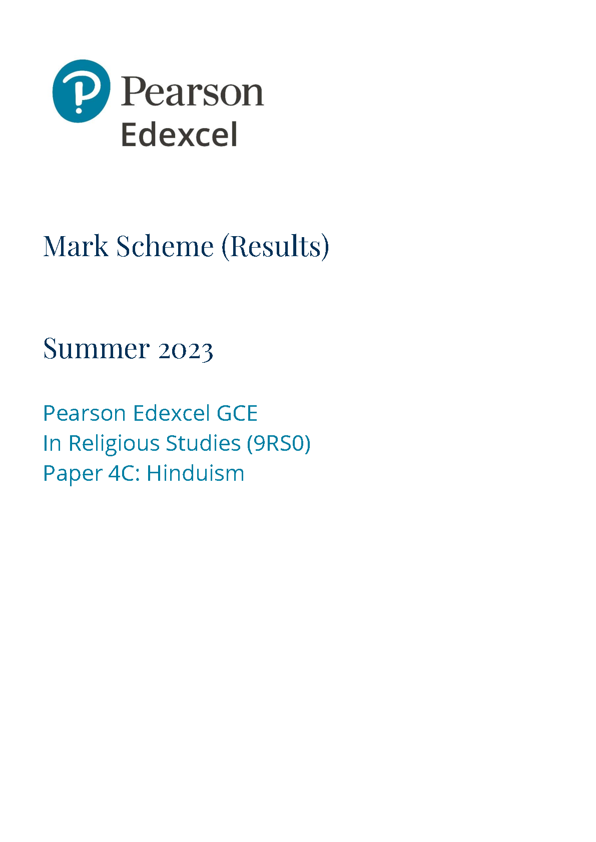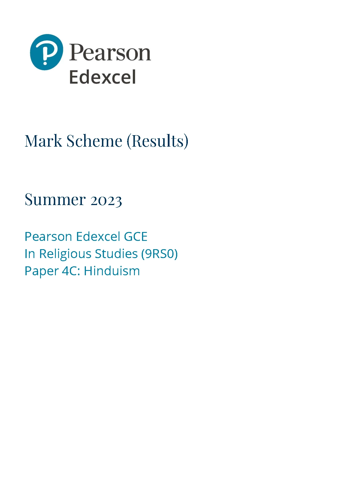 PEARSON EDEXCEL A LEVEL Religious Studies PAPER 4 2023 MARK SCHEME (9RS0/4C: Hinduism)