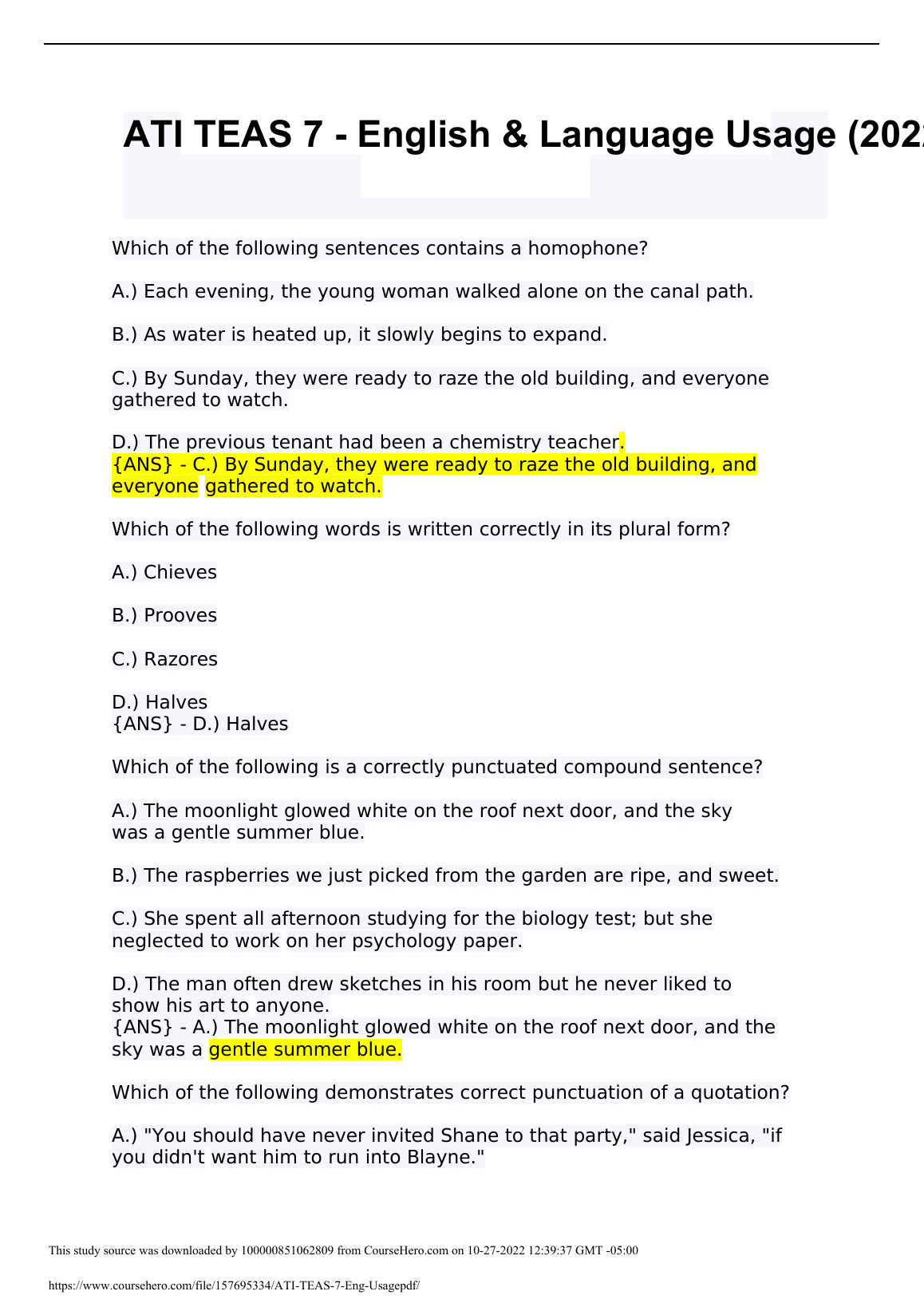 ATI TEAS 7 - English & Language Usage (2022/2023)