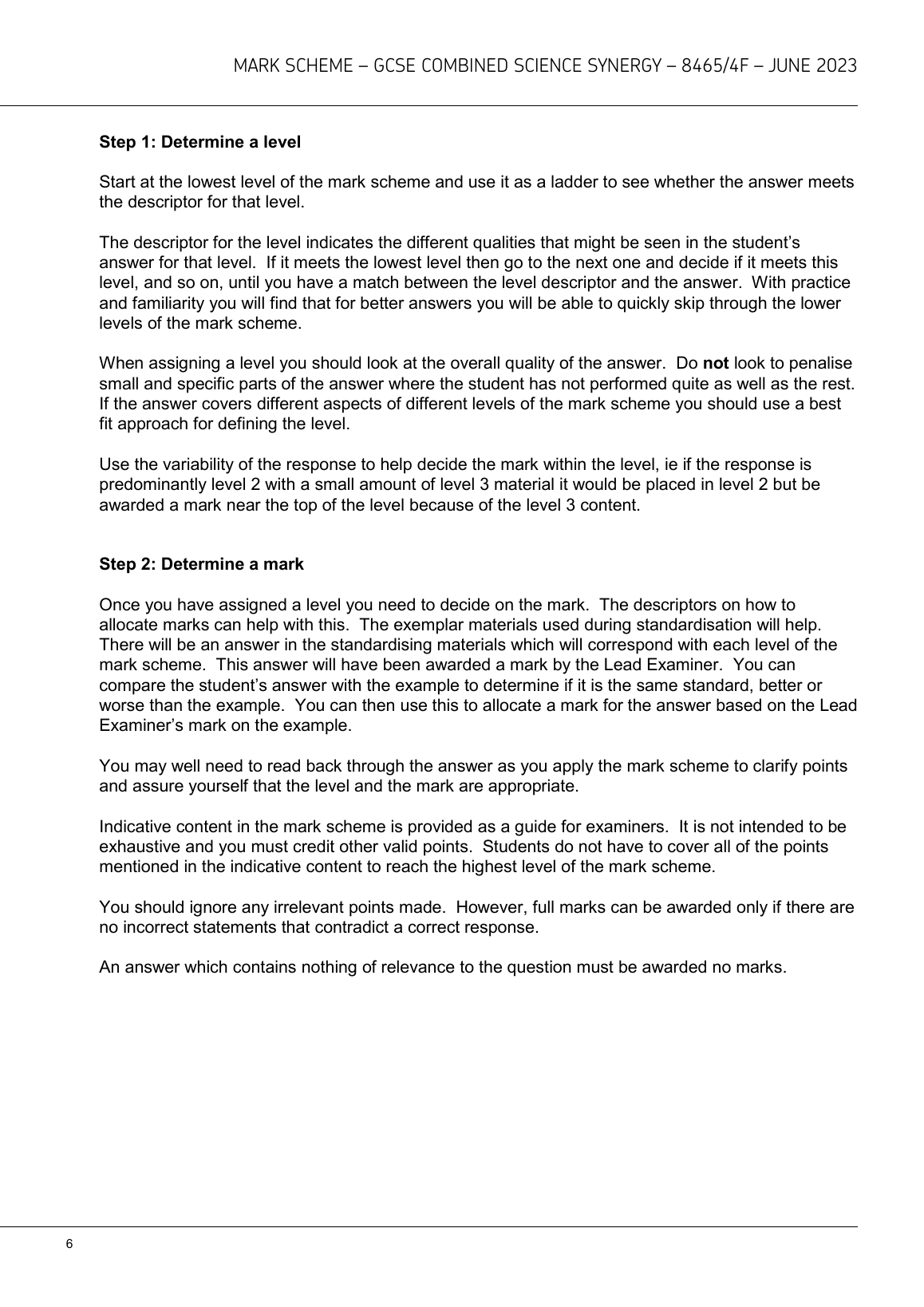 AQA GCSE COMBINED SCIENCE SYNERGY PAPER 4 2023 MARK SCHEME (8465/4F:Foundation Tier - Physical Sciences)