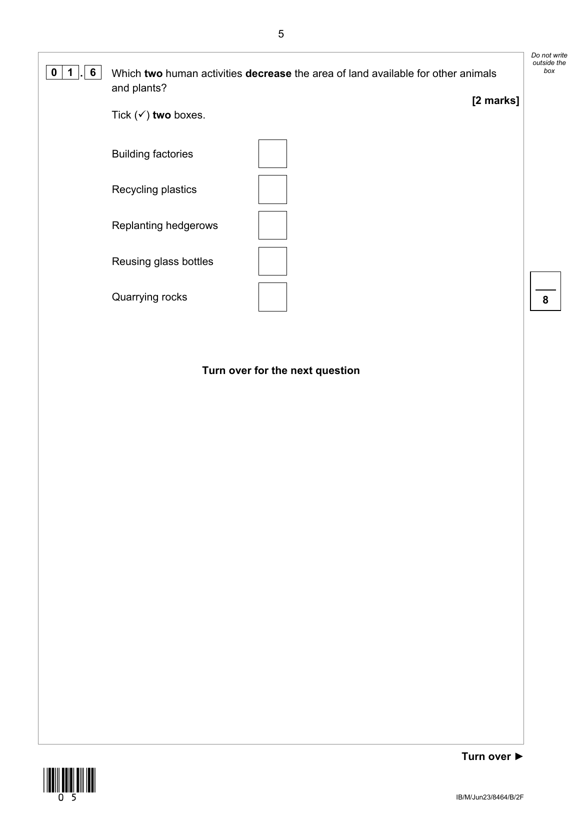 AQA GCSE COMBINED SCIENCE: TRILOGY BIOLOGY PAPER 2 2023 (8464/B/2F)