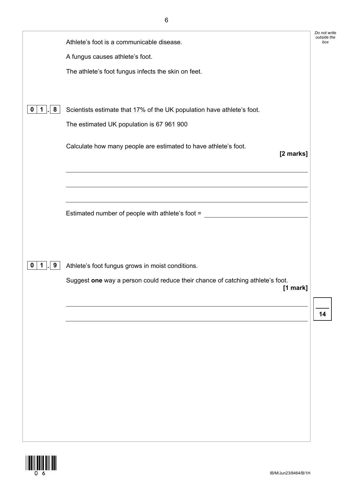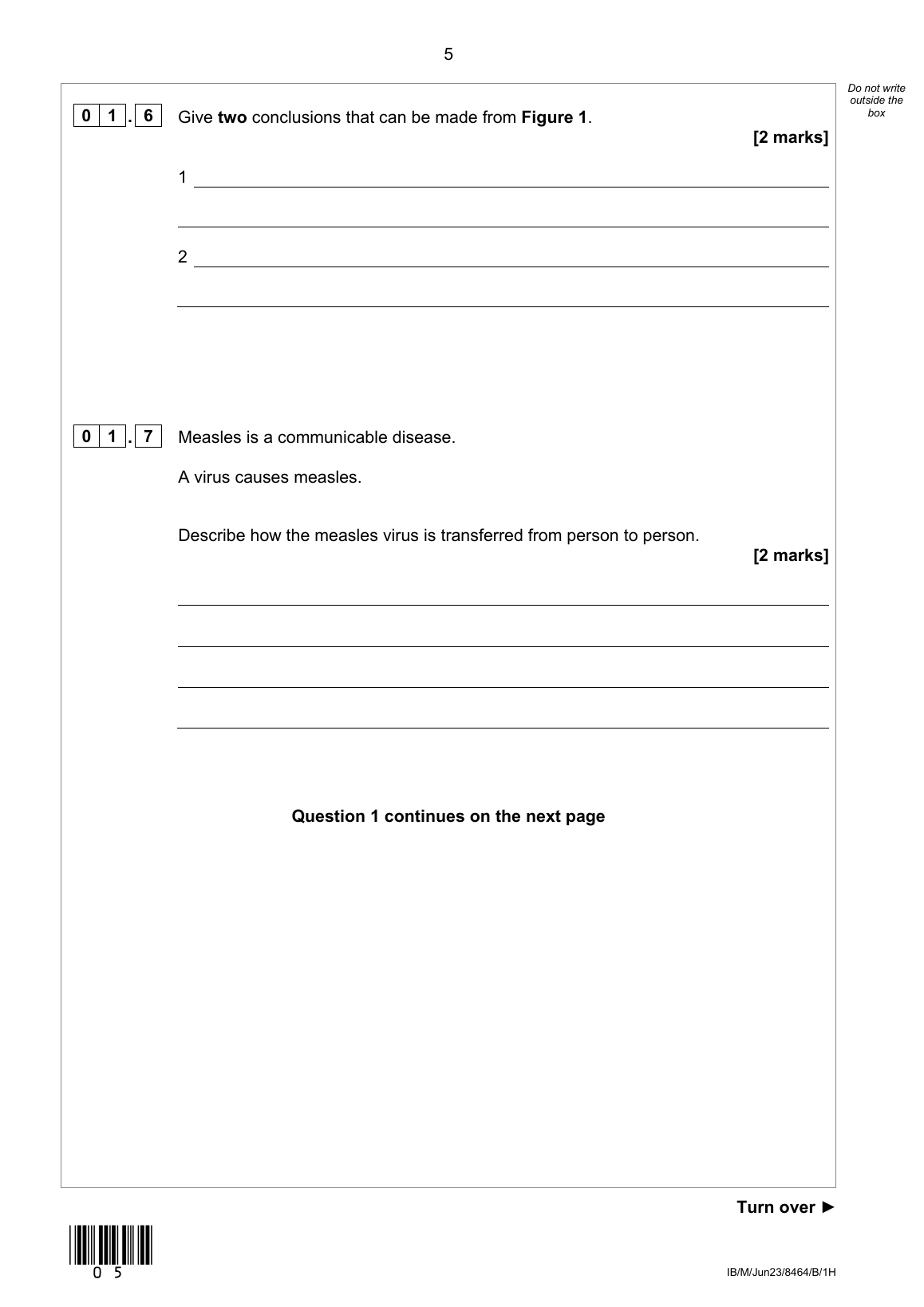 AQA GCSE COMBINED SCIENCE: TRILOGY BIOLOGY PAPER 1 2023 (8464/B/1H)