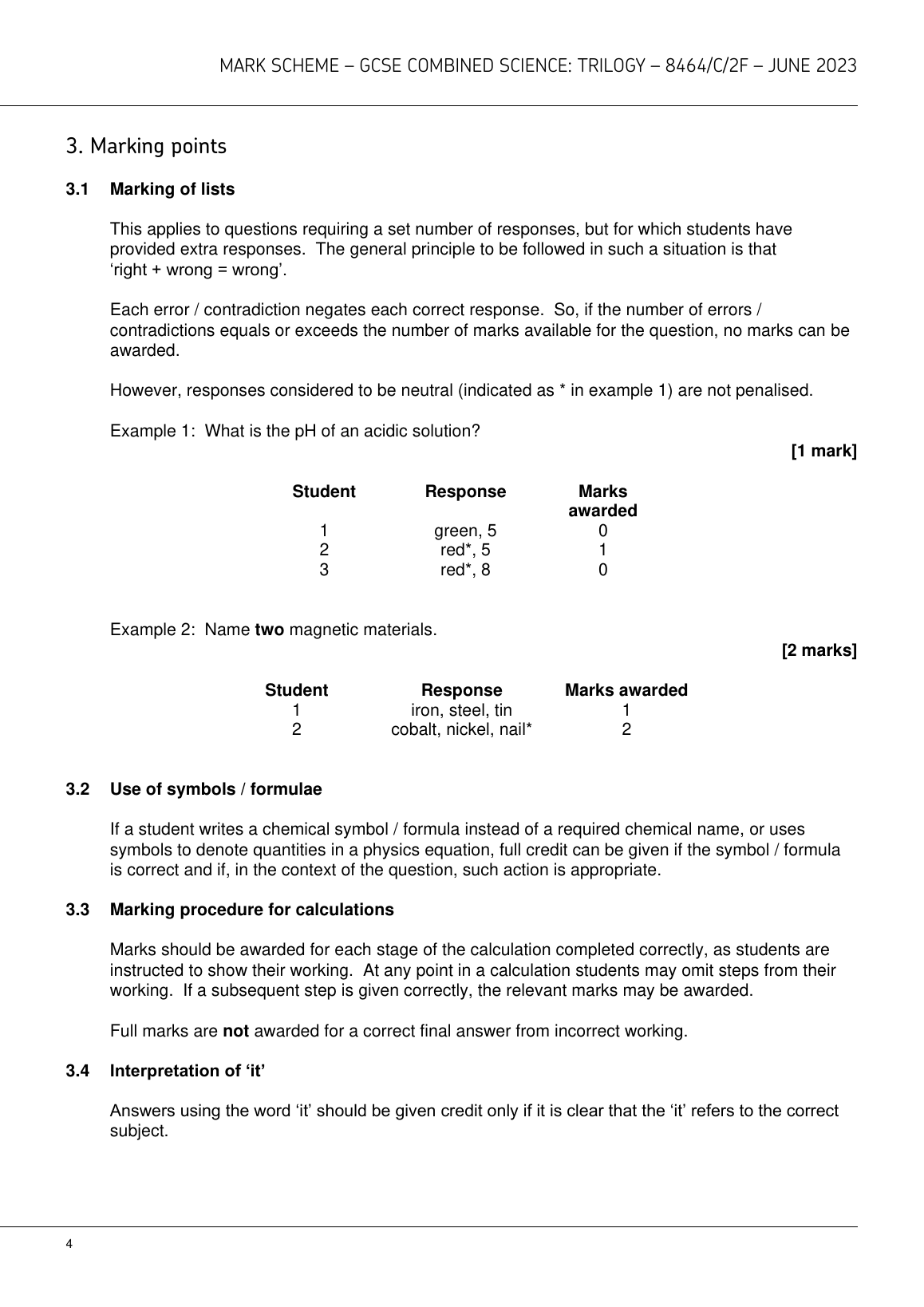 AQA GCSE COMBINED SCIENCE: TRILOGY CHEMISTRY PAPER 2 2023 MARK SCHEME (8464/C/2F)
