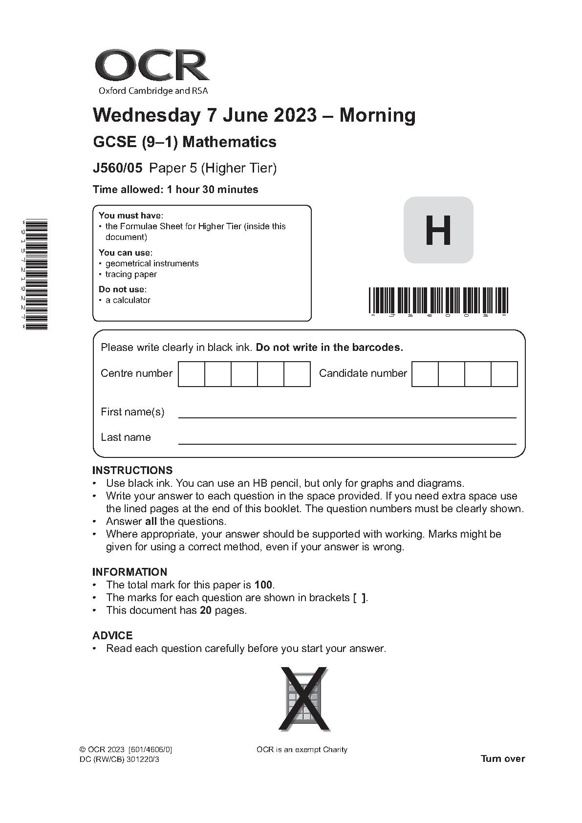 OCR GCSE MATHEMATICS PAPER 5 2023 (J560/05: Higher Tier)