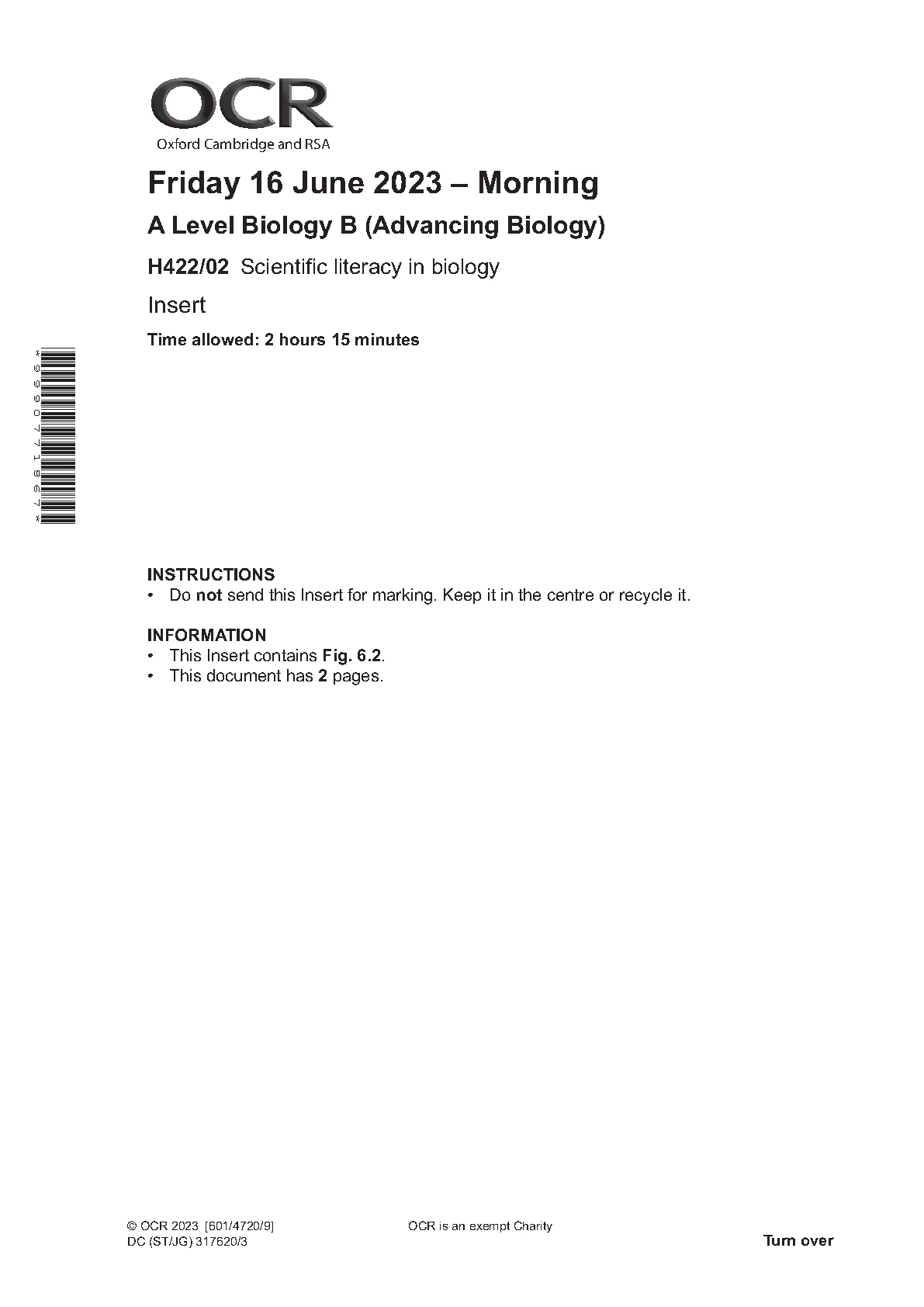 OCR A LEVEL BIOLOGY B (Advancing Biology) PAPER 2 2023 INSERT (H422/02: Scientific Literacy In Biology)
