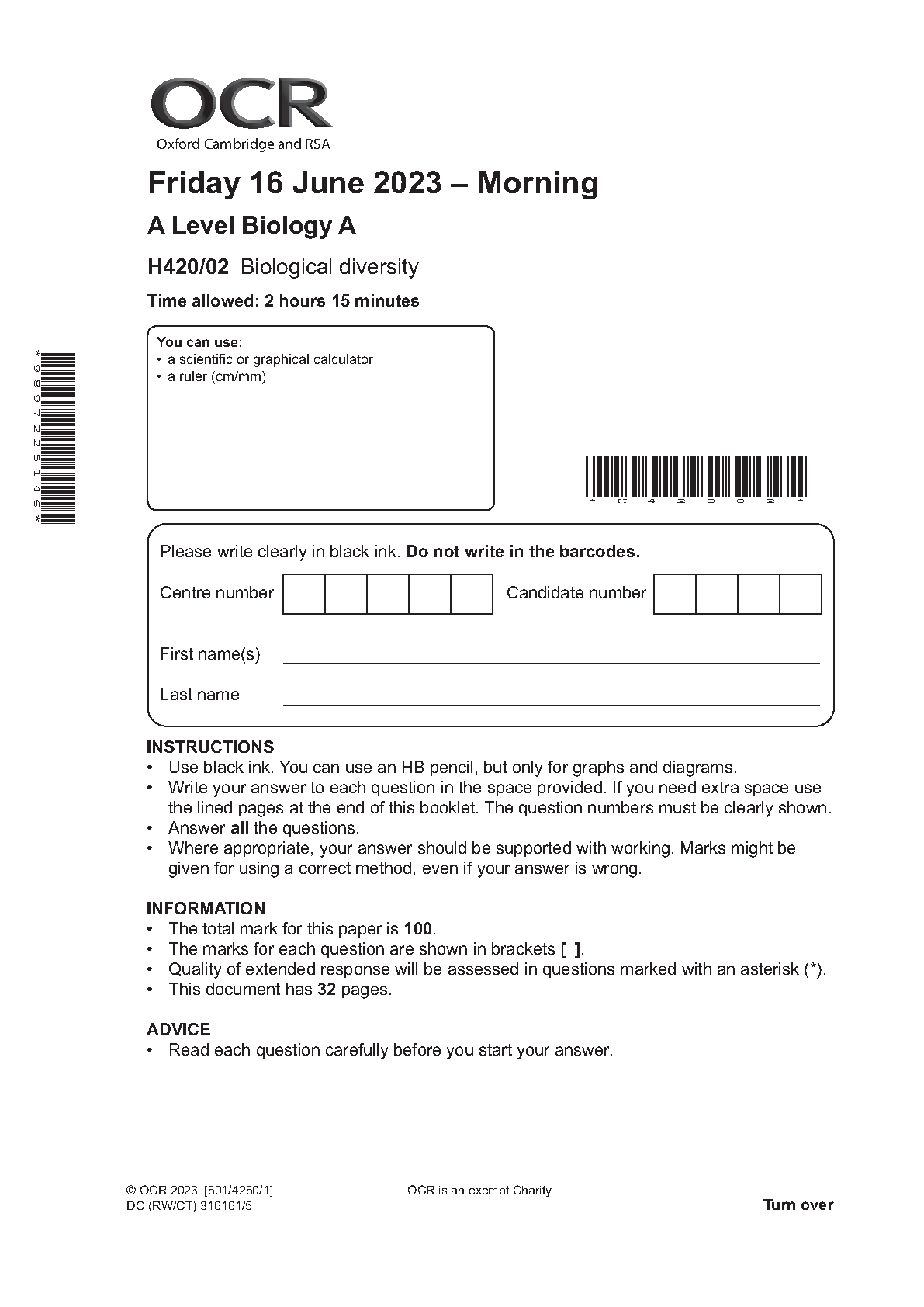 OCR A LEVEL BIOLOGY A PAPER 2 2023 (H420/02: Biological diversity)
