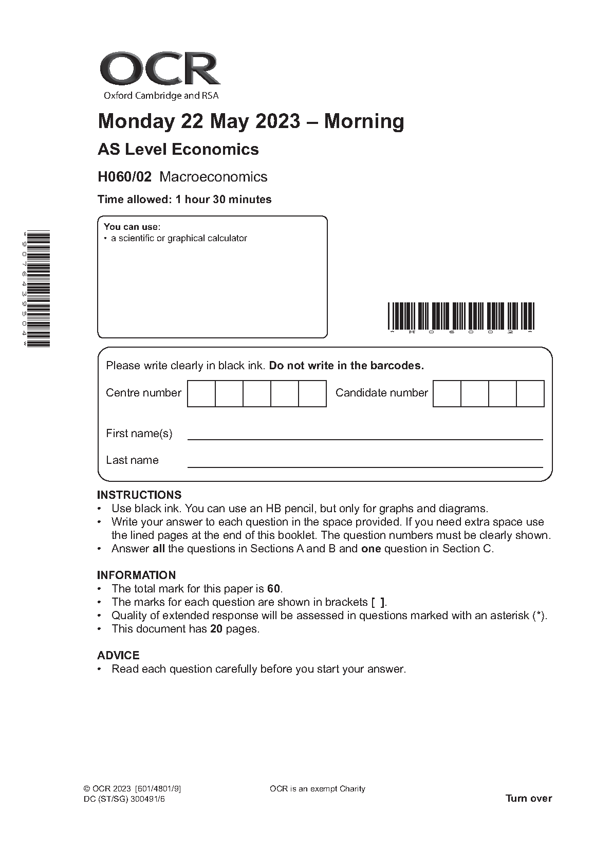 OCR GCE AS ECONOMICS PAPER 2 2023 (H060/02: Macroeconomics)