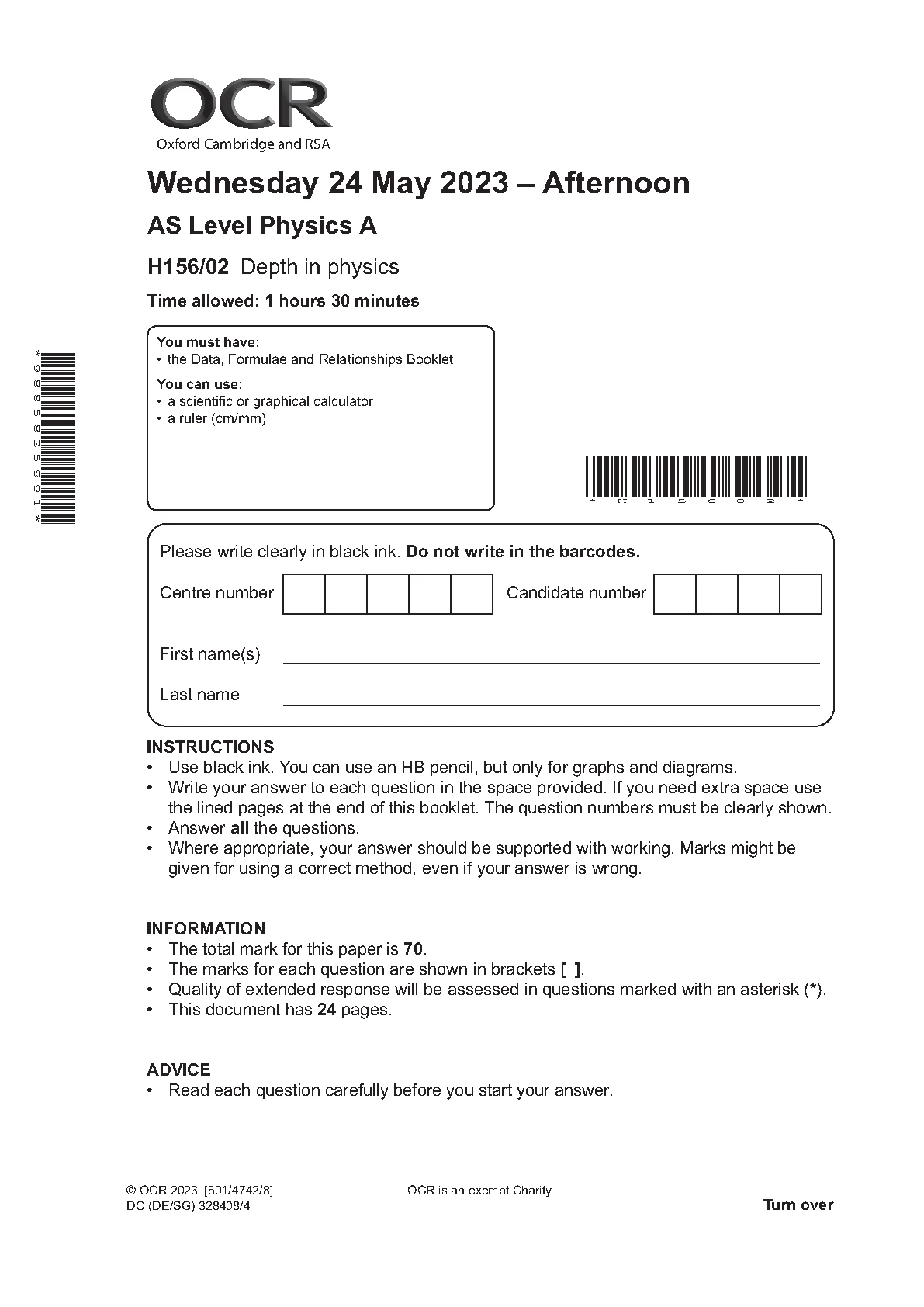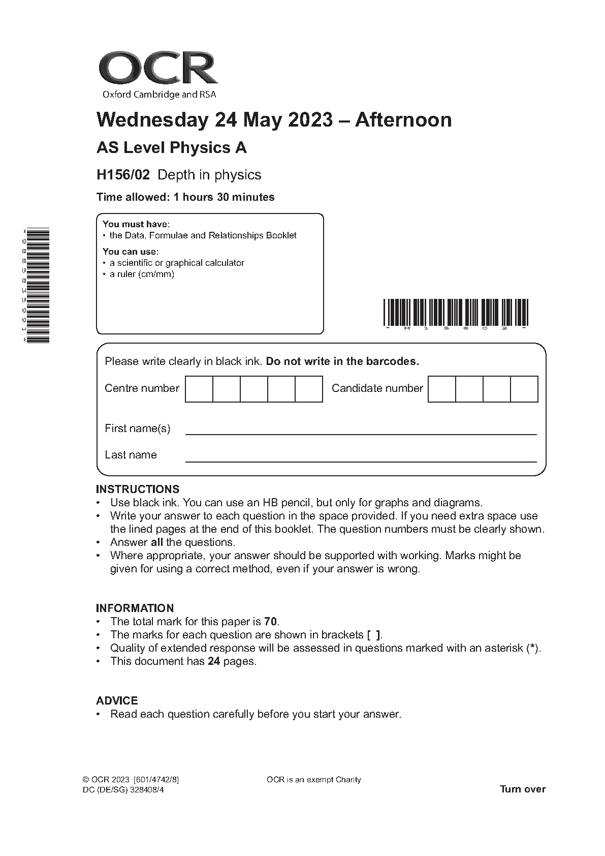 OCR AS Physics A PAPER 2 2023 (H156/02: Depth in physics). DOWNLOAD OFFICIAL AND VERIFIED OCR AS Physics A PAPER 2 2023 on Hackedexams.com INSTANTLY.