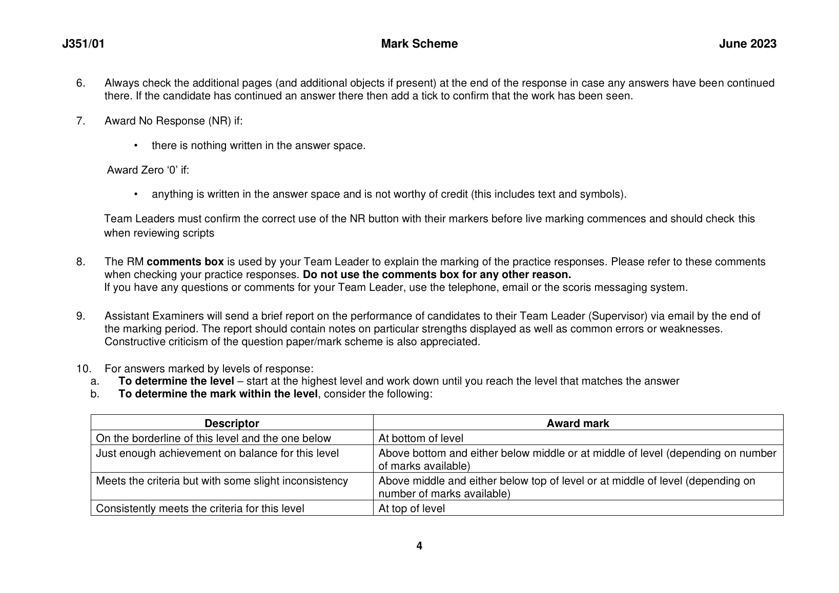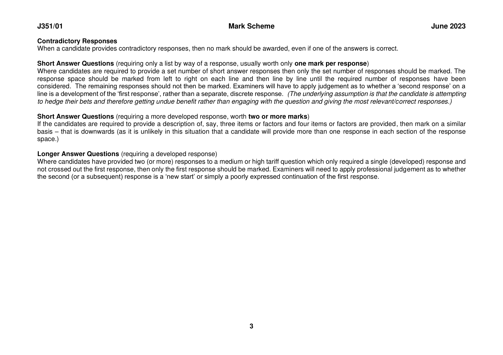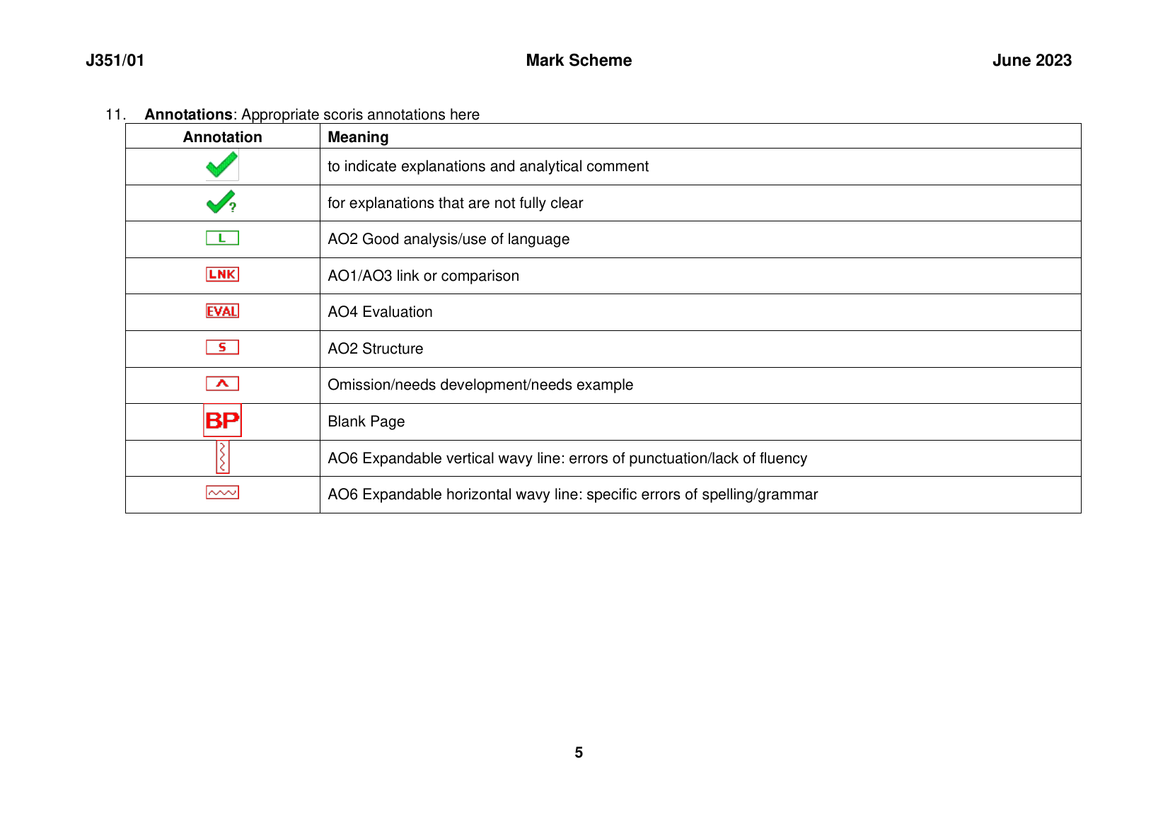 OCR GCSE English Language PAPER 1 2023 MARK SCHEME (J351/01: Communicating information and ideas)