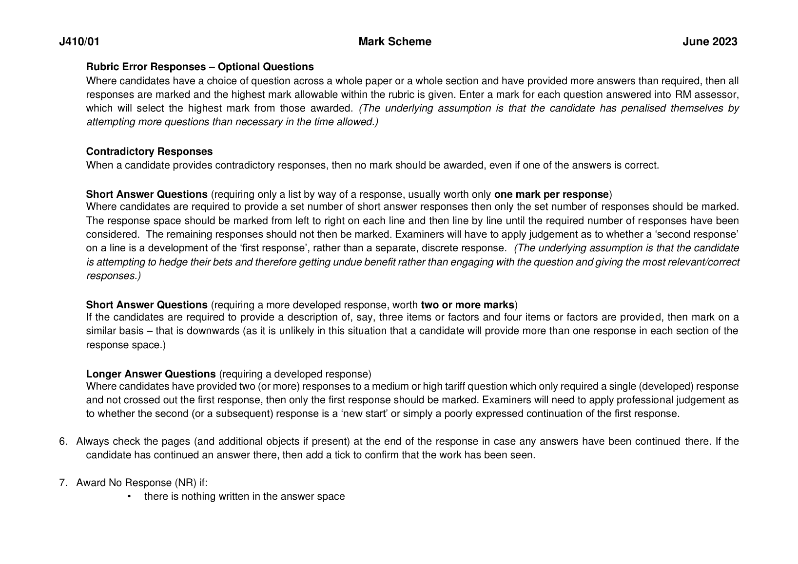 OCR 2024 GCSE History A Explaining the Modern World J410/12: The English Reformation c.1520-c.1550 with Castles: Form and Function c.1000-1750 Question paper and Mark scheme Merged OCR 2024 GCSE History A (Explaining the Modern World) J410/13: Personal rule to Restoration 1629-1660 with castles: form and function c.1000-1750 Question paper and Mark scheme Merged OCR 2024 GCSE History A Explaining the Modern World J410/08: Migration to Britain c.1000 to c. 2010 Question paper and Mark scheme Merged OCR 2024 GCSE History A Explaining the Modern World J410/09: Power: Monarchy and Democracy in Britain c.1000 to 2014 Question paper and Mark scheme Merged OCR 2024 GCSE History A (Explaining the Modern World) J410/01: China 1950-1981: The people and the state Question paper and Mark scheme Merged OCR 2024 GCSE History A Explaining the Modern World J410/02: Germany 1925-1955: The People and the State Question paper and Mark scheme Merged OCR 2024 GCSE History A Explaining the Modern World J410/07: The USA 1945-1974: The People and the State Question paper and Mark scheme Merged OCR GCSE History A PAPER 5 2023 MARK SCHEME (J410/05: International Relations: the changing international order 1918–c.1975 with South Africa 1960–1994: The People and the State) OCR 2024 GCSE History A (Explaining the Modern World) J410/11: The impact of Empire on Britain 1688-c.1730 with urban environments: Patterns of migration Question paper and Mark scheme Merged OCR 2024 GCSE History A (Explaining the Modern World) J410/06: The USA 1919-1948: The people and the state Question paper and Mark scheme Merged