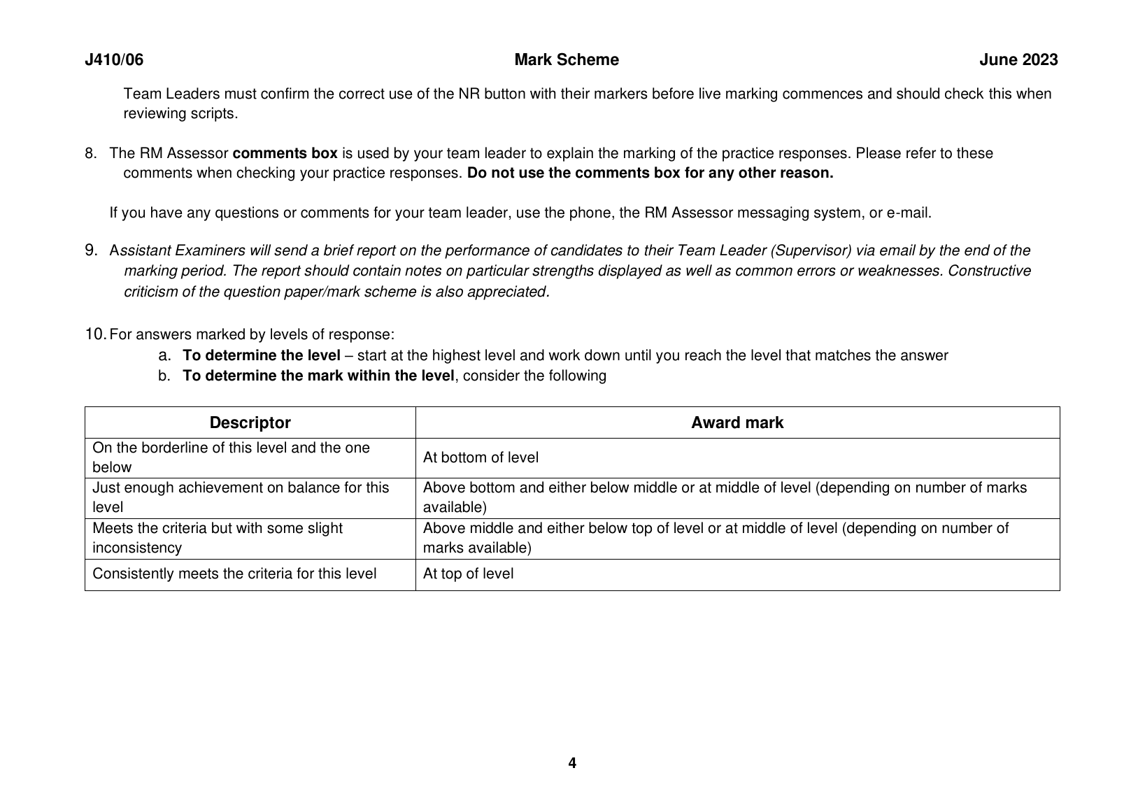 OCR GCSE History A PAPER 6 2023 MARK SCHEME (J410/06: International Relations: the changing international order 1918–c.1975 with The USA 1919 –1948: The People and the State)