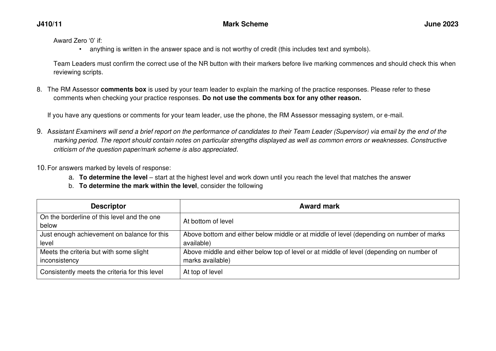 OCR GCSE History A PAPER 11 2023 MARK SCHEME (J410/11: The Impact of Empire on Britain 1688–c.1730 with Urban Environments: Patterns of Migration)