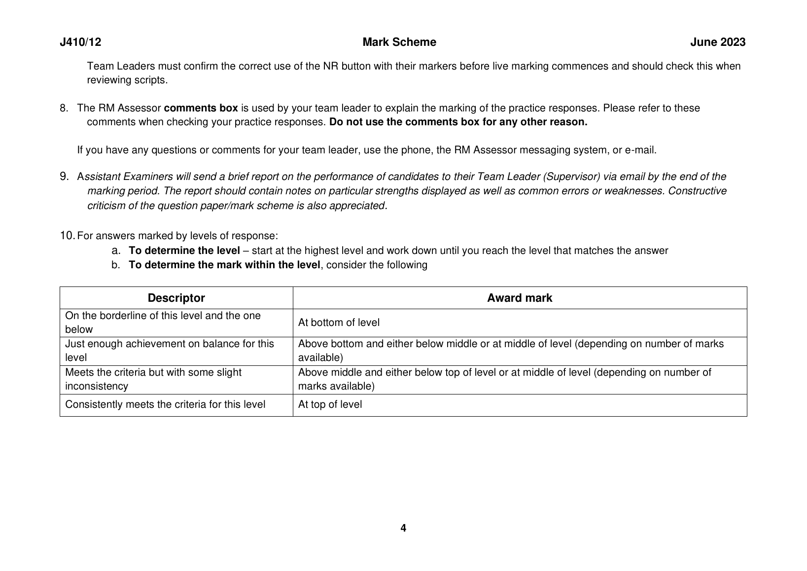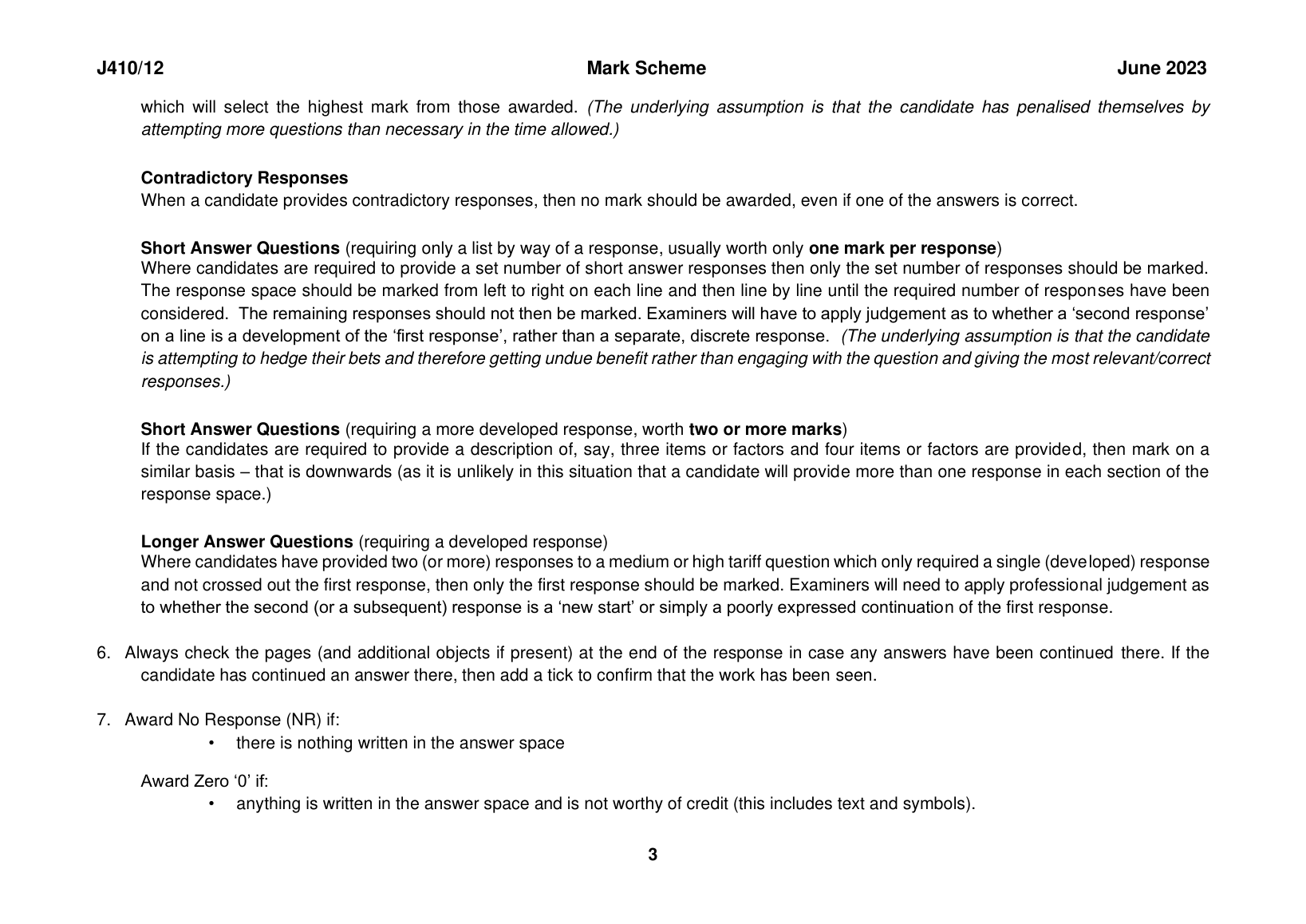 OCR GCSE History A PAPER 12 2023 MARK SCHEME (J410/12: The English Reformation c.1520–c.1550 with Castles: Form and Function c.1000–1750)