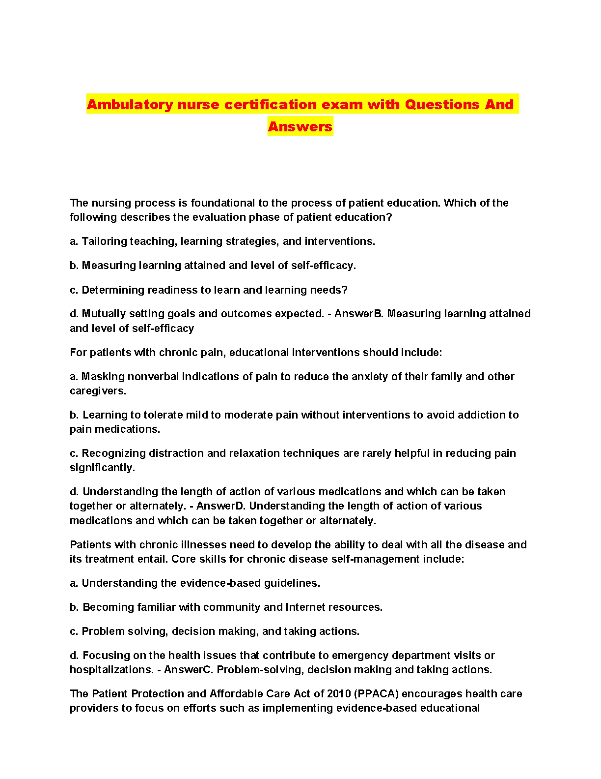 Ambulatory nurse certification exam with Questions And Answers GRADED A+ FOR 2023/2024. DOWNLOAD on www.hackedexams.com INSTANTLY.