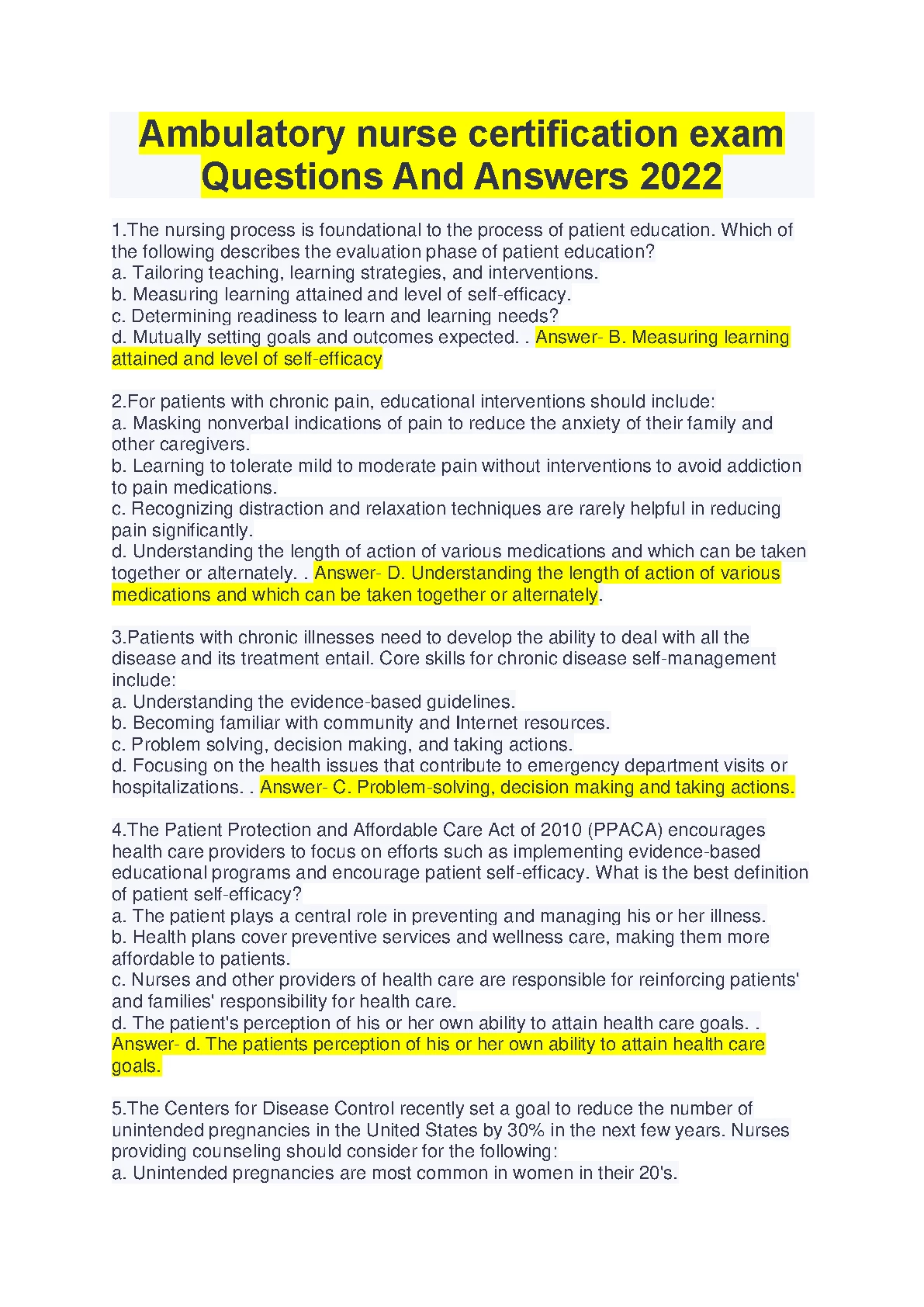 Ambulatory nurse certification exam Questions And Answers BRAND NEW GUIDE FOR 2023/2024