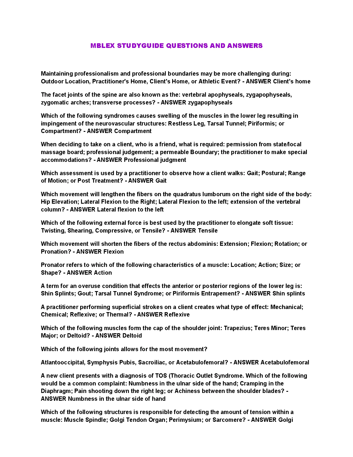 MBLEX STUDYGUIDE QUESTIONS AND ANSWERS RATED A+ FOR 2023/2024. DOWNLOAD on www.hackedexams.com INSTANTLY.
