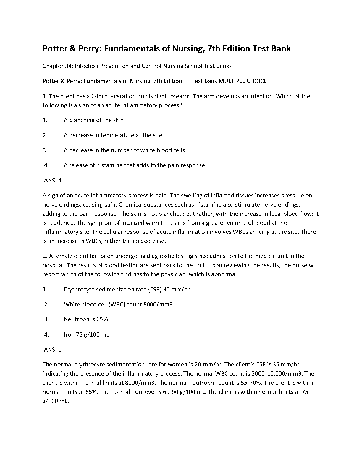 Potter & Perry: Fundamentals of Nursing, 7th Edition Test Bank