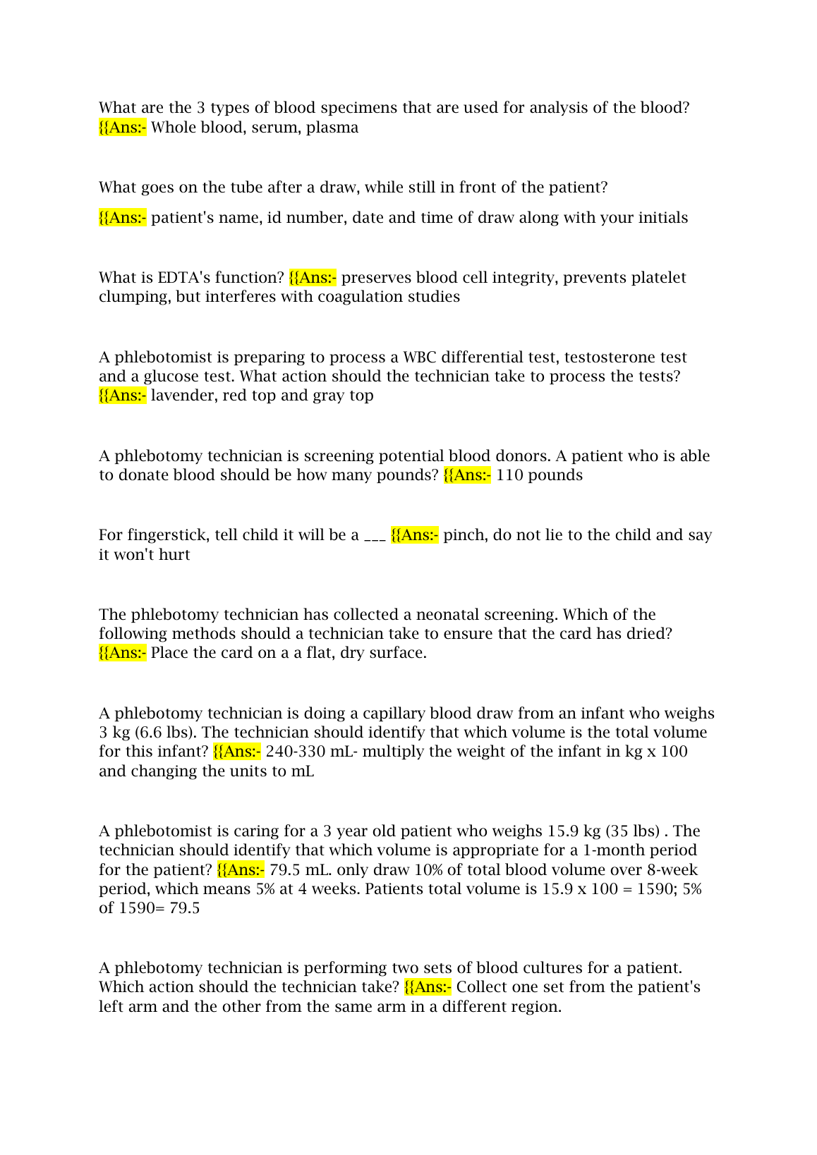 NHA Phlebotomy certification EXAM/Phlebotomy NHA Certification Questions With Complete Solutions |Verified| 2023